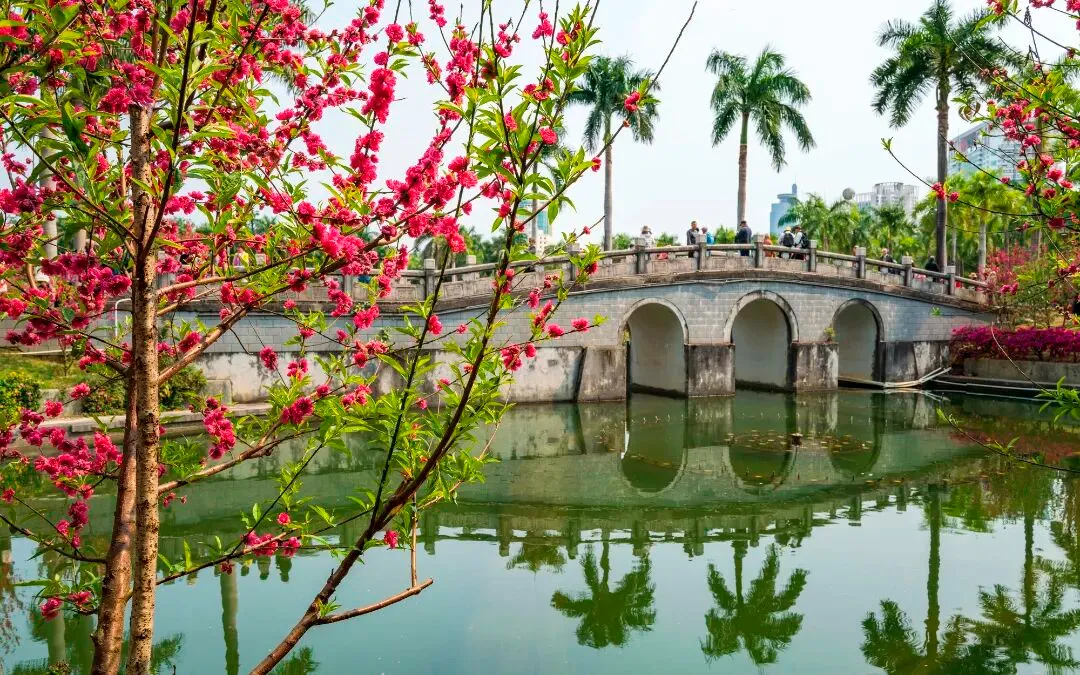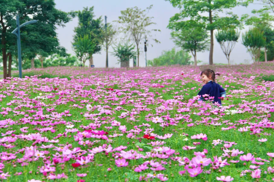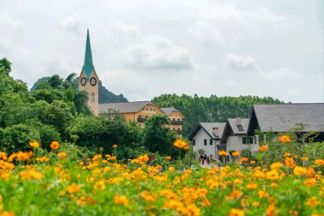 二月底至三月初,恰是梦想城的好时节。花海里,象征幸福的格桑花随风轻摇;湖心岛上,洋紫荆与黄花风铃木争相绽放……各种鲜花与异域建筑交织成清新画卷。正是踏青寻春、定格美好的诗意去处。