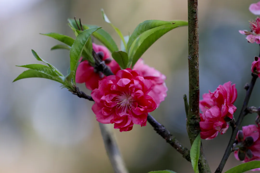 桃花,是蔷薇科李属的著名春季观赏花木,在中国文化中象征着春天、爱情与生机。南湖公园主要种植重瓣粉红碧桃,是碧桃中最经典、最富浪漫气息的品种,盛花时满树烂漫,几乎不见枝叶,只见无数粉红的花球密布于棕褐色的枝条上,从树干到枝梢,堆云叠雪,形成一片绵延、柔和、如烟似霞的粉色云海。桃花花期较短(单株约10天),盛花期遇风雨易凋落,赏花需抓住时机。