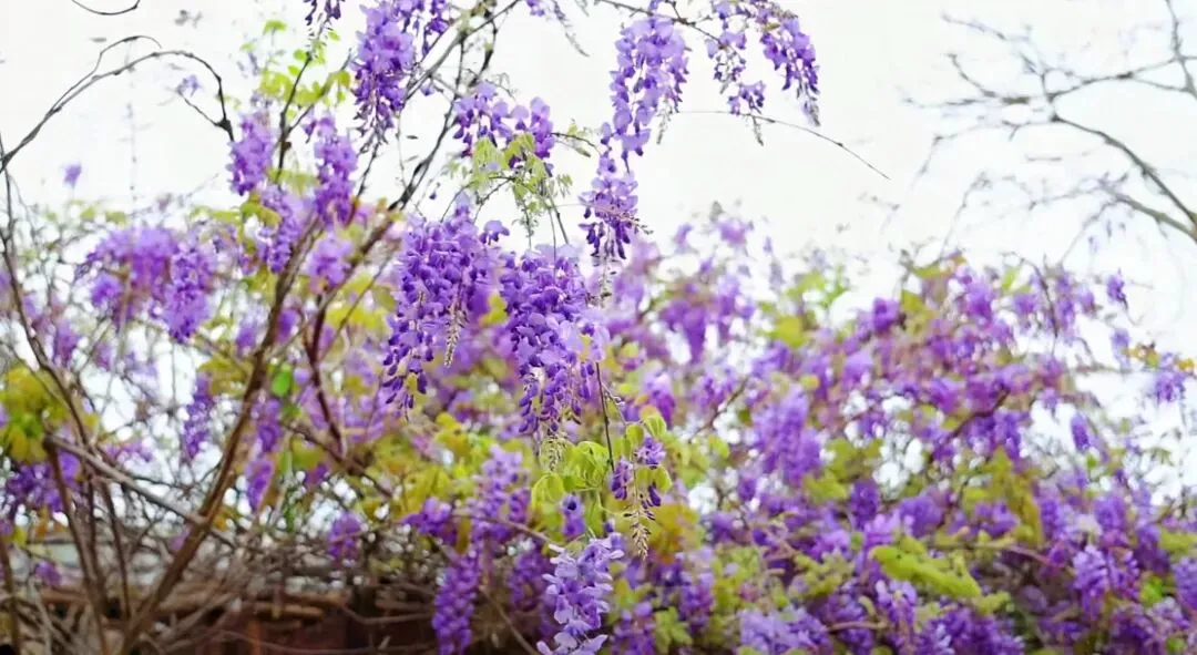 紫藤作为观花绿荫藤本植物。初夏时紫穗悬垂,花繁而香,盛暑时则浓叶满架,一般应用于园林棚架、湖畔、池边、假山、石舫等处。杜英可做庭园绿化或观赏树种,其最显著的特征是在叶片在掉落前叶片正红,是观叶赏树时值得驻足欣赏的植物。