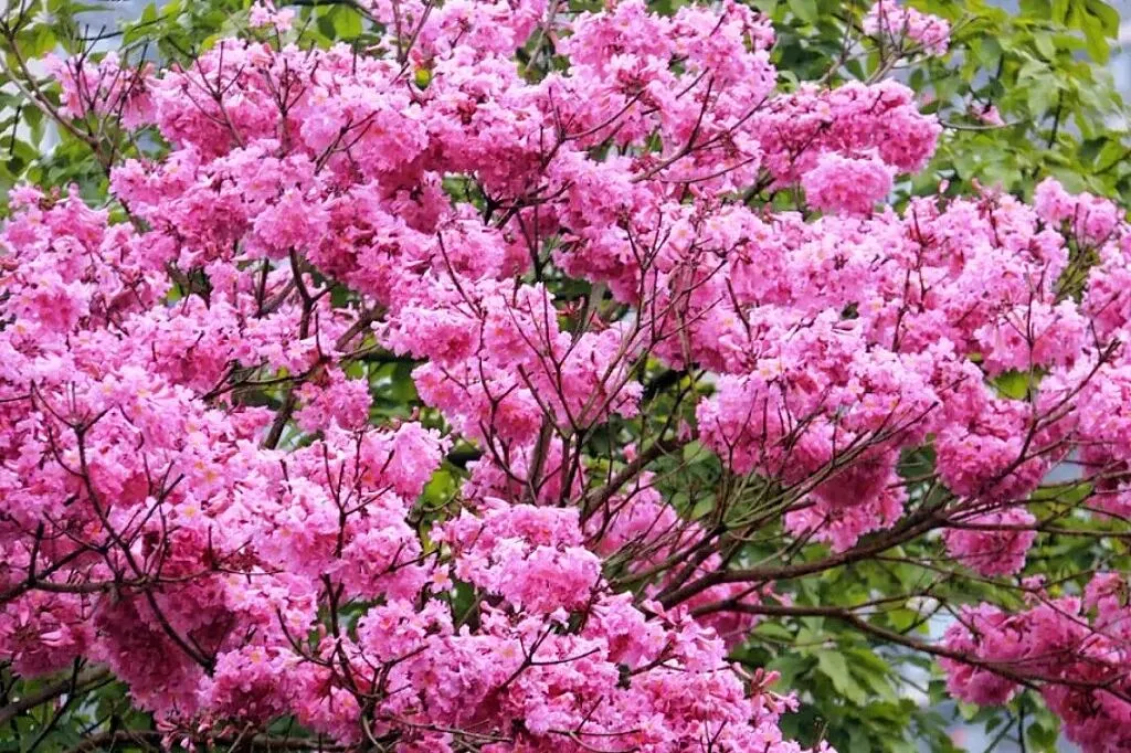 紫花风铃木是紫葳科、风铃木属落叶乔木。原产巴西、巴拉圭、危地马拉、阿根廷、特立尼达和多巴哥等中南美洲的国家和地区。性喜光,稍耐荫,生长适温20-30℃,最低温度5℃。对土壤要求不严。树皮具有广泛的医药价值,含有多种药用成分,其中最有效的化学成分为拉帕醇,它能够促进身体局部氧的供应抵抗细菌、病毒、真菌、寄生虫等微生物的感染。同时,紫花风铃木中还含有丰富的铁元素,能够帮助排除体内废物,促进体内营养物质的同化,因此具有补血作用。