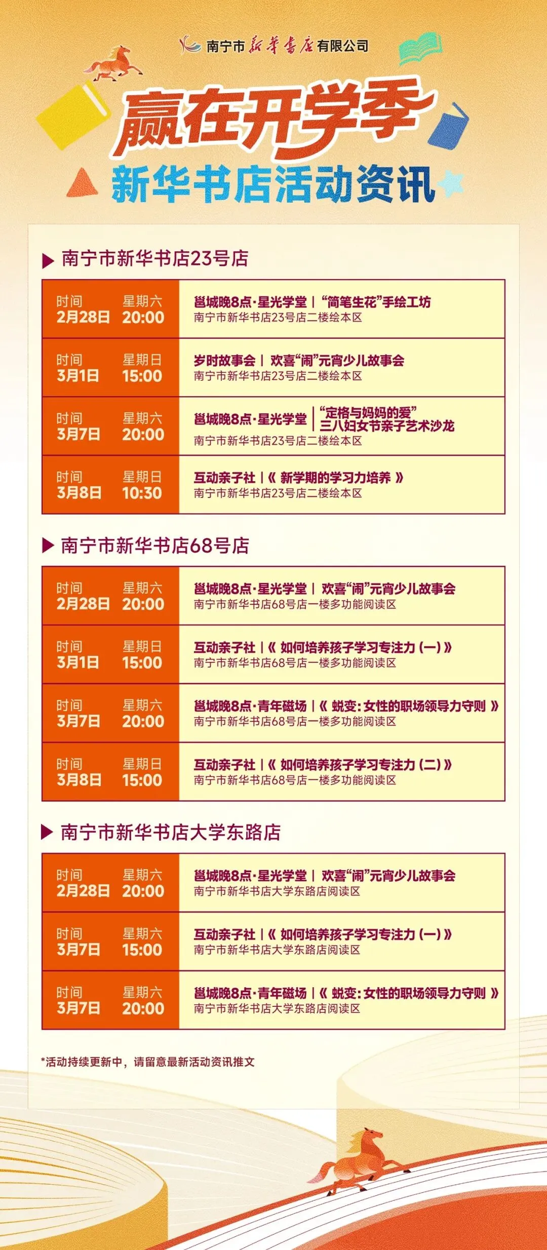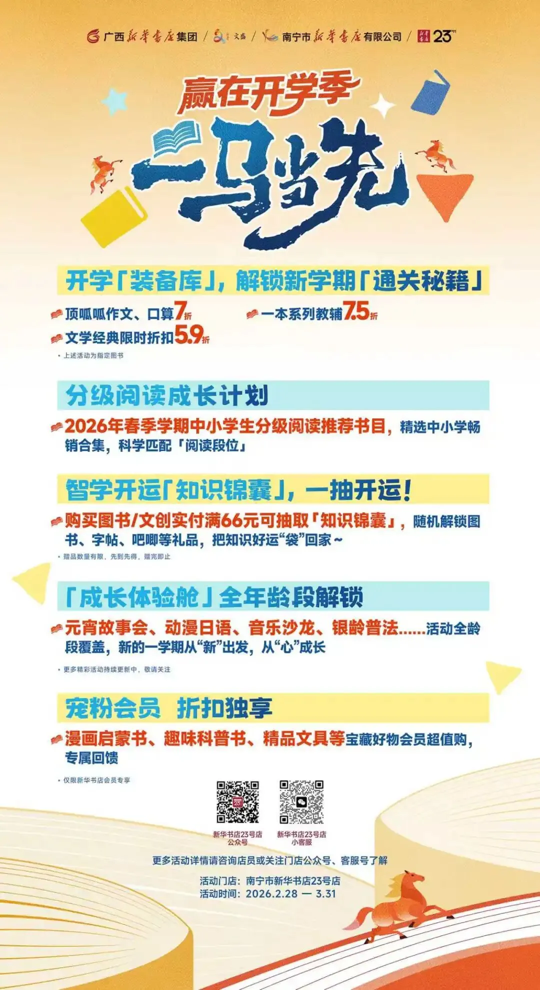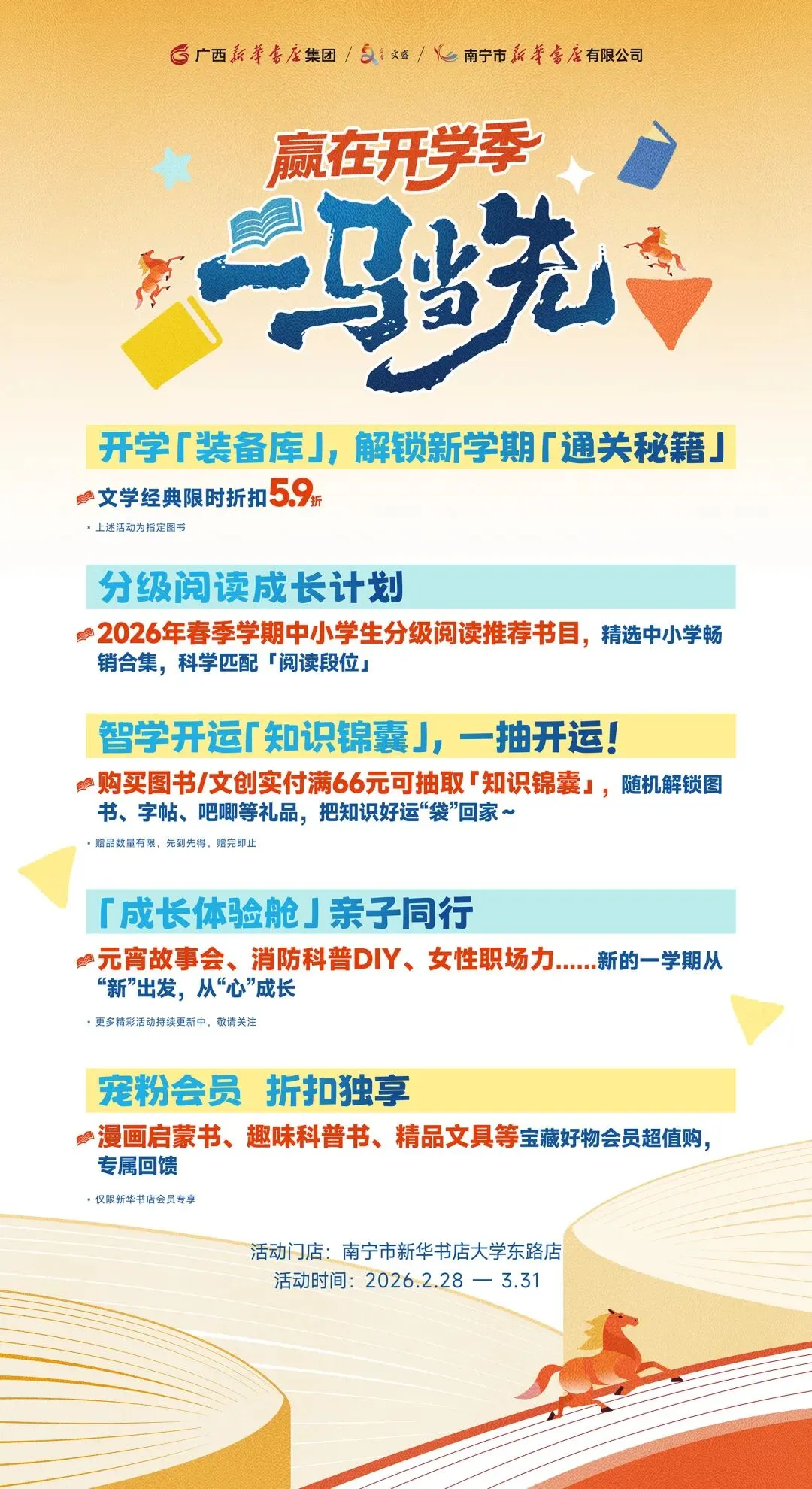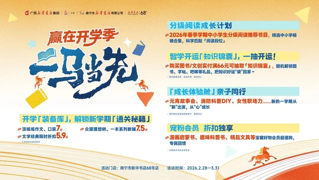 新学期,来南宁市新华书店,不只为买书,更为遇见更好的自己,一起“马”上出发,“赢”接精彩!