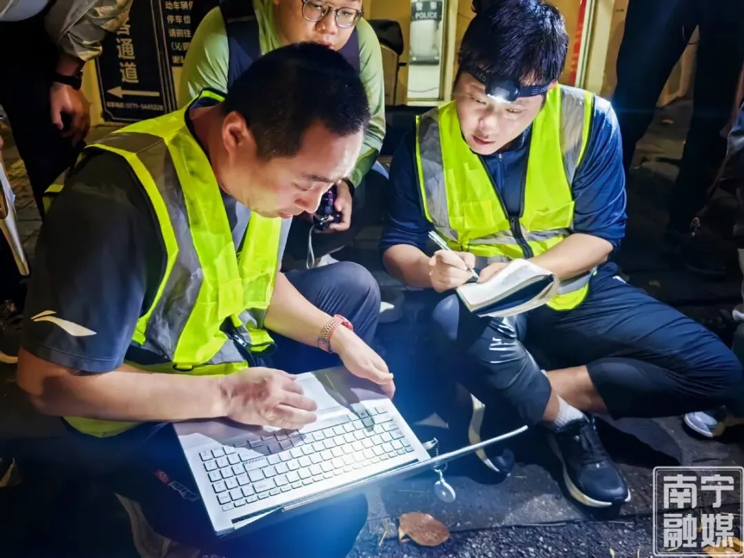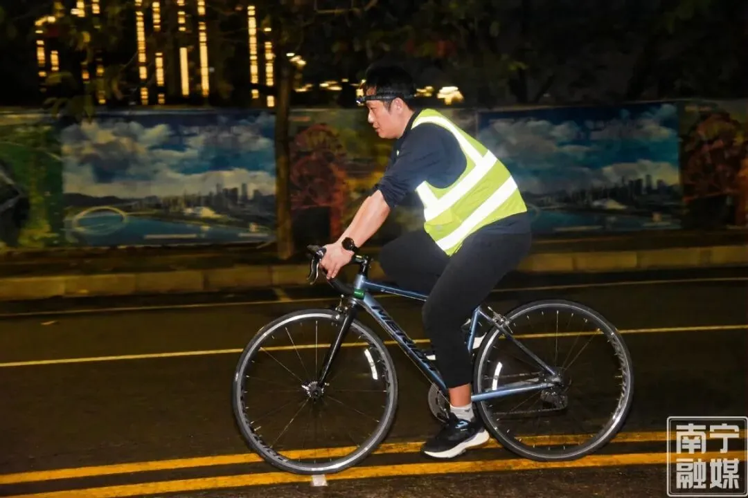 说罢,丈量团队来到了作为赛事起终点的南宁博物馆北门,在道路旁标注出起点位置后,谢海滨骑上改装后的自行车沿龙堤路往良堤路方向,按照赛道路线匀速骑行。期间,谢海滨不仅需要保持骑行路线的准确性,还要在途中每公里停下,对赛道公里数进行定点标注和记录,丈量工作持续至凌晨。谢海滨说,赛道丈量是马拉松赛前一项重要的工作,通过丈量员骑行全程精准丈量出路线里程,确保所有参赛者在公正公平的路线上完成比赛。