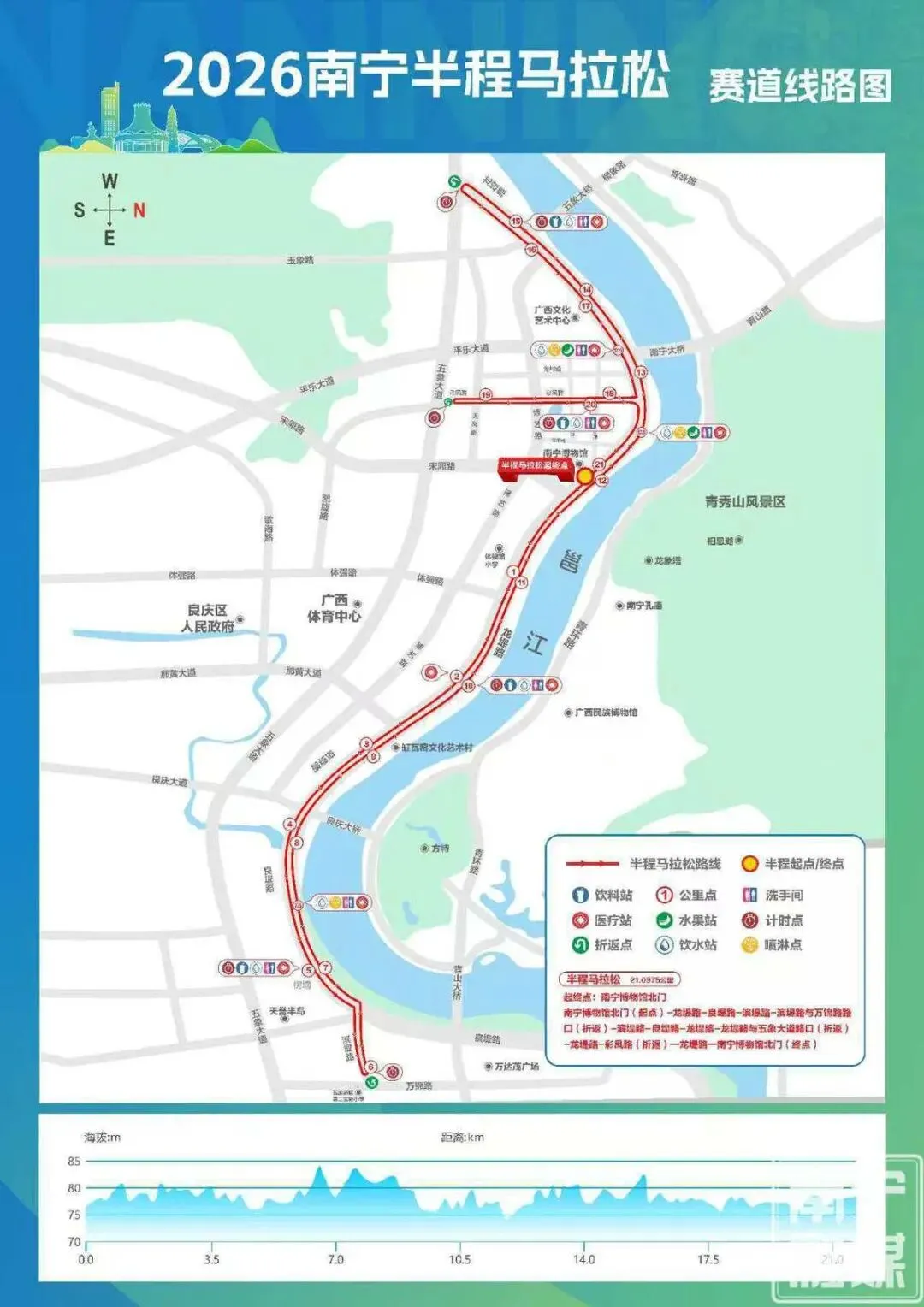 据赛程安排,比赛将于3月22日鸣枪开跑,具体比赛路线为:南宁市博物馆北门(起点)—龙堤路—良堤路—滨堤路—滨堤路与万锦路路口(折返)—滨堤路—良堤路—龙堤路—龙堤路与五象大道路口(折返)—龙堤路—彩凤路(折返)—龙堤路—南宁博物馆北门(终点)。目前,除了赛道丈量,急救跑者招募等赛事各项筹备工作正有序推进中。