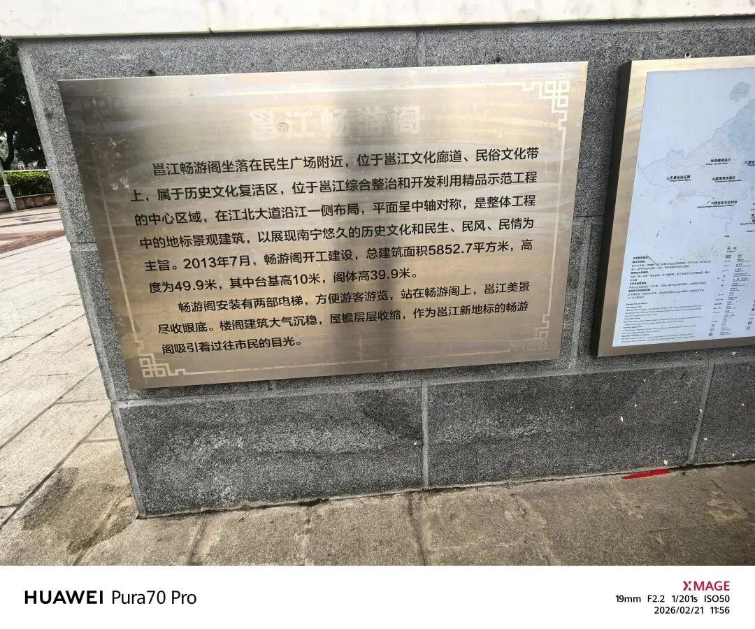 畅游阁不仅是观赏邕江美景的绝佳地点,登阁可远眺青秀山、俯瞰江面渔帆与城市天际线,也是南宁冬泳、灯光秀等公共活动的重要场所。