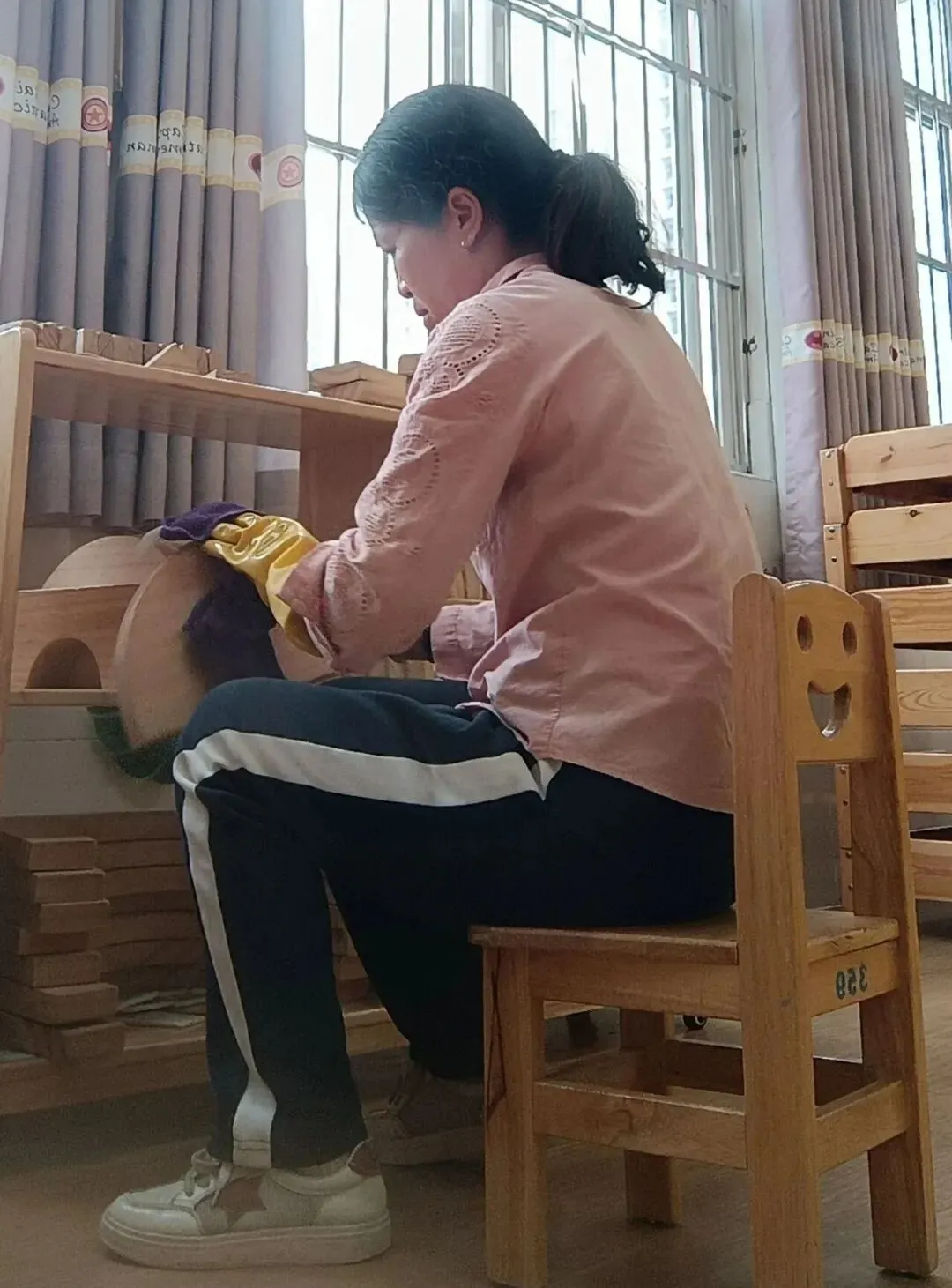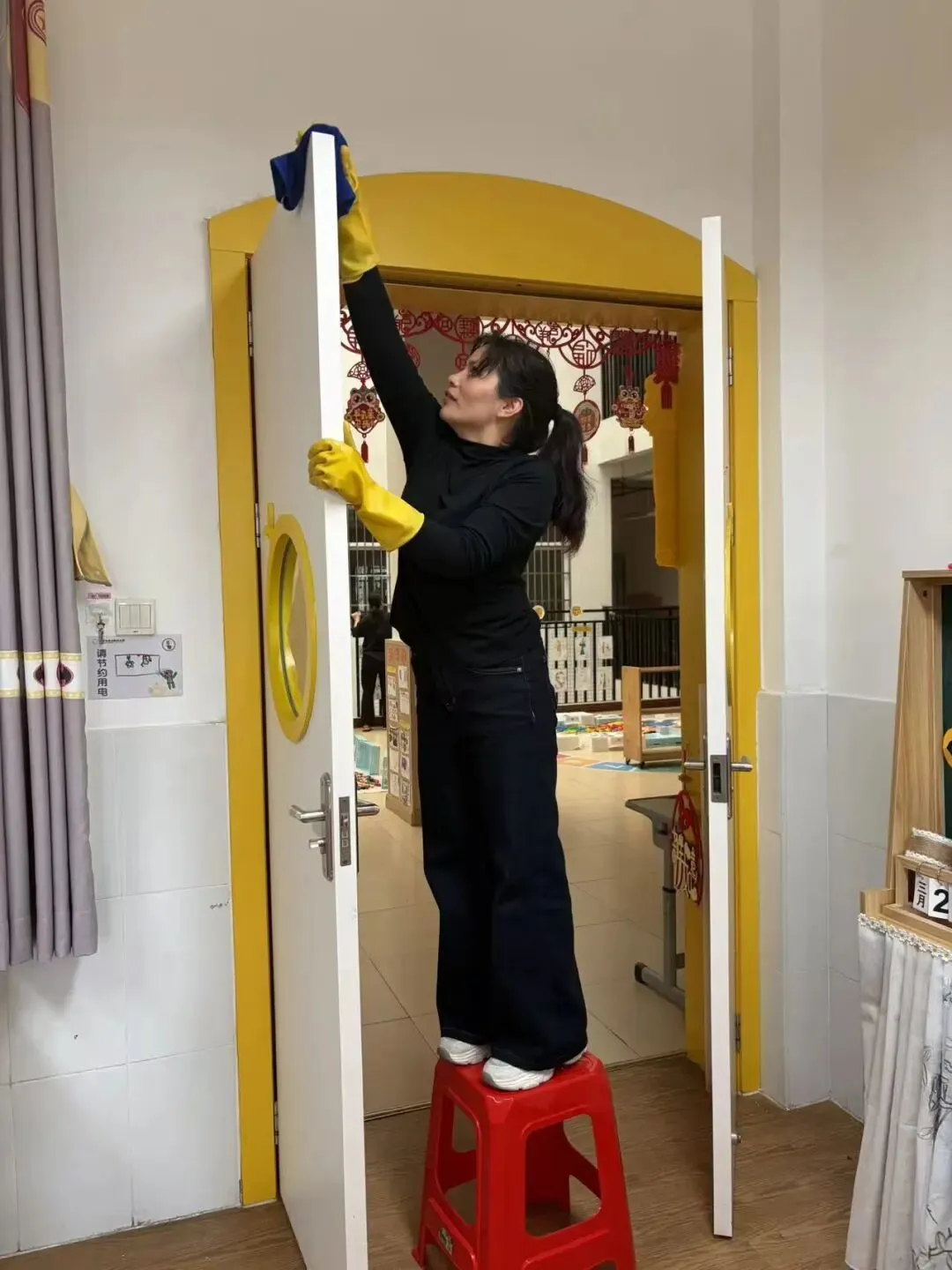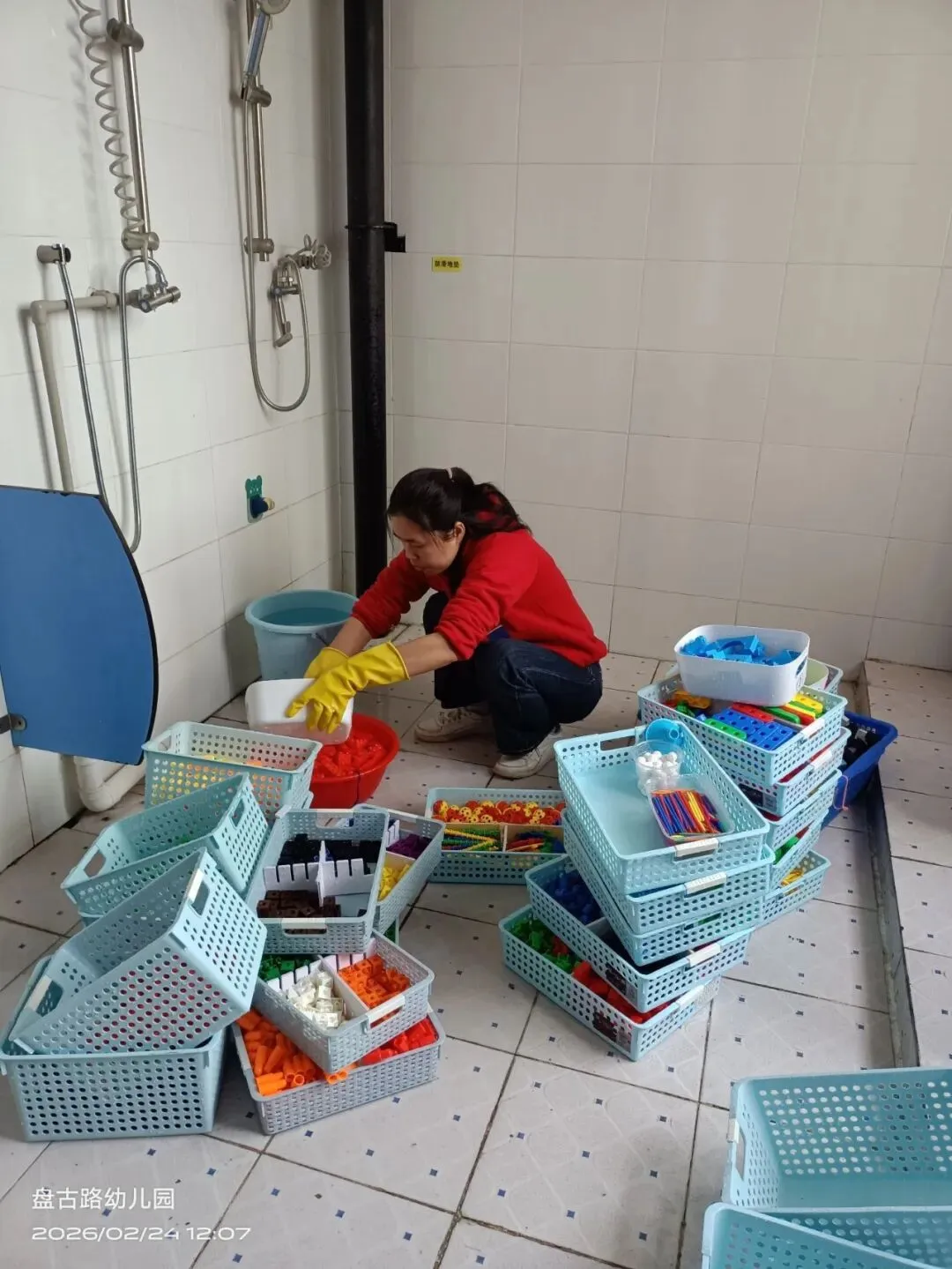 新学期将至,幼儿园处处涌动着温暖的身影:老师们精心布置教室环境、消毒玩具,食堂阿姨认真清洗厨具,保洁人员全面清扫操场......