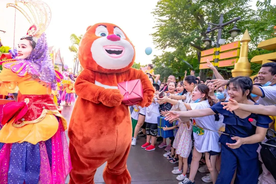 《熊出没》这部国产动画片伴随着一代又一代人成长,熊大、熊二和光头强这三个经典形象也慢慢成为了大家童年生活的一部分。漫步在南宁方特东盟神画中,游客可随处看到熊大熊二的主题元素,到商店中还可以买到熊大熊二的各种玩偶礼品。
