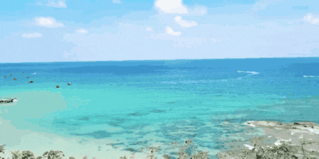 晴天时海中瑰丽珊瑚、各色海鱼如画显现,洁净沙滩呈铲状,沿岸的火山岩、海蚀岩丰富、怪异而奇特。
