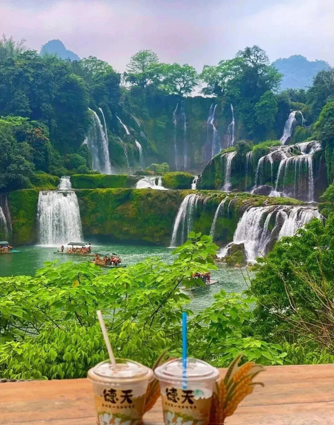 德天瀑布与越南的板约瀑布连为一体,就像一对亲密的姐妹,袅袅婷婷,携手而立。