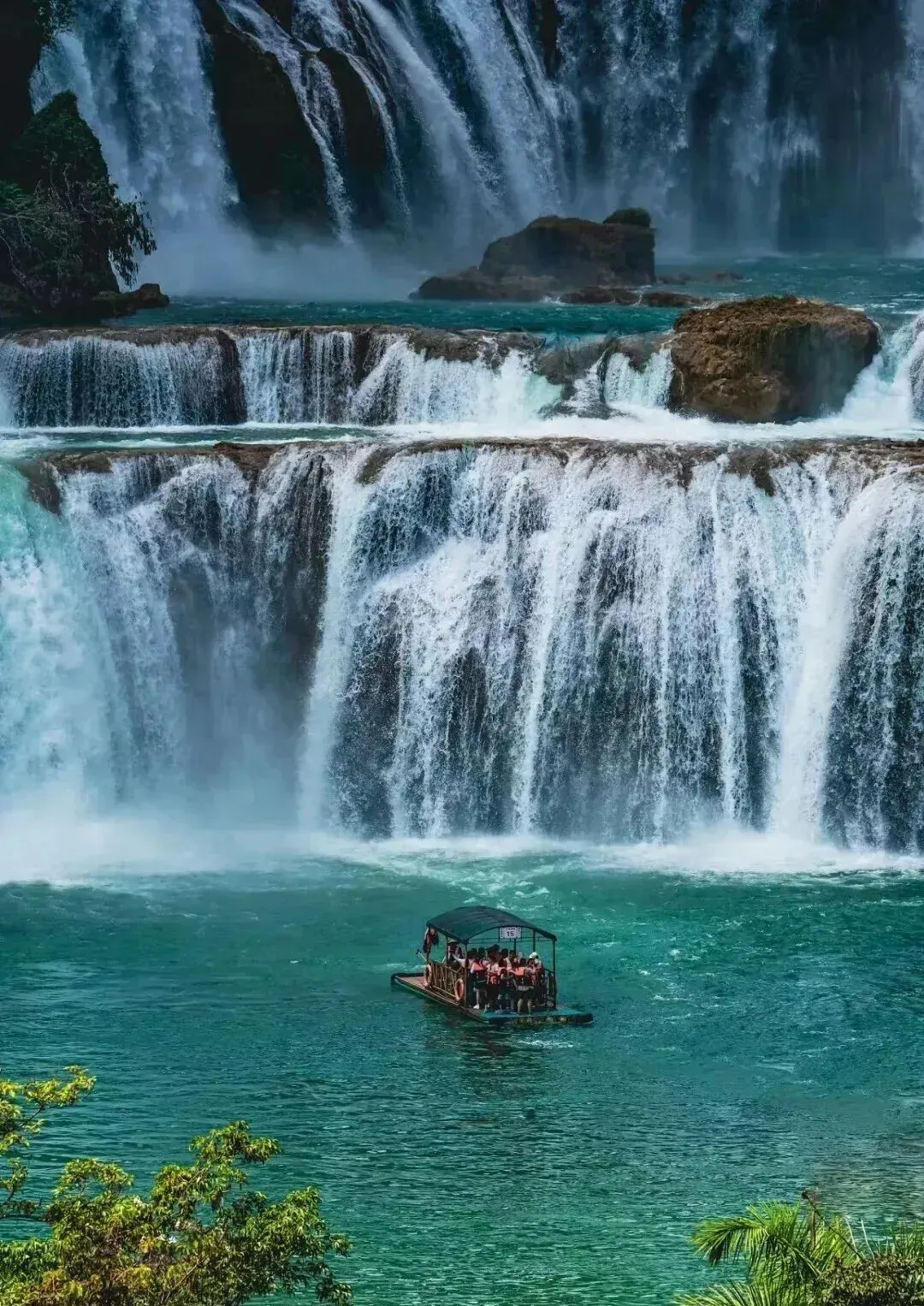 德天跨国大瀑布——被中国地理杂志评为“中国最美丽的瀑布”,留影清代53号界碑;