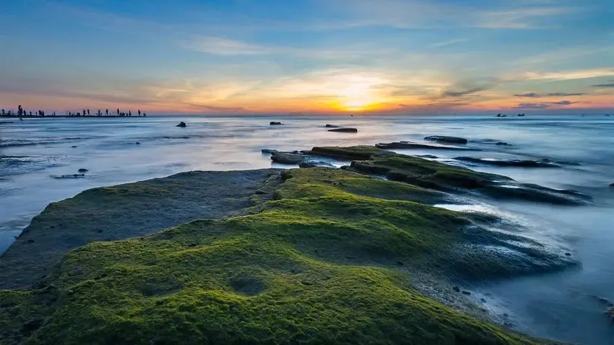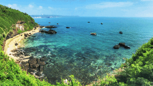 晴天时海中瑰丽珊瑚、各色海鱼如画显现,洁净沙滩呈铲状,沿岸的火山岩、海蚀岩丰富、怪异而奇特。