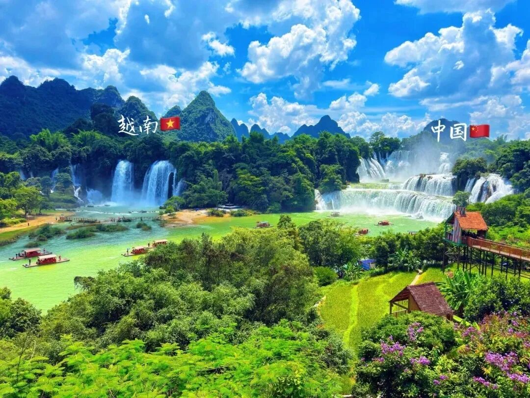 德天跨国大瀑布——被中国地理杂志评为“中国最美丽的瀑布”,留影清代53号界碑;