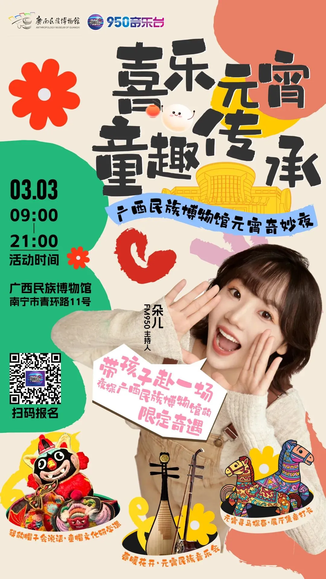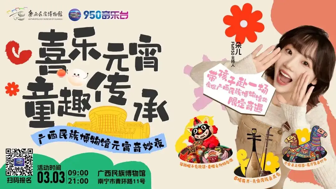 活动限量招募30组家庭,一起走进广西民族博物馆,在音乐、研学、游园、打卡中,感受元宵民俗的乐趣,传承广西民族文化,留下一段专属马年元宵的温馨回忆。