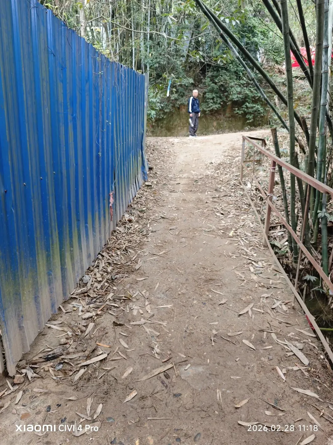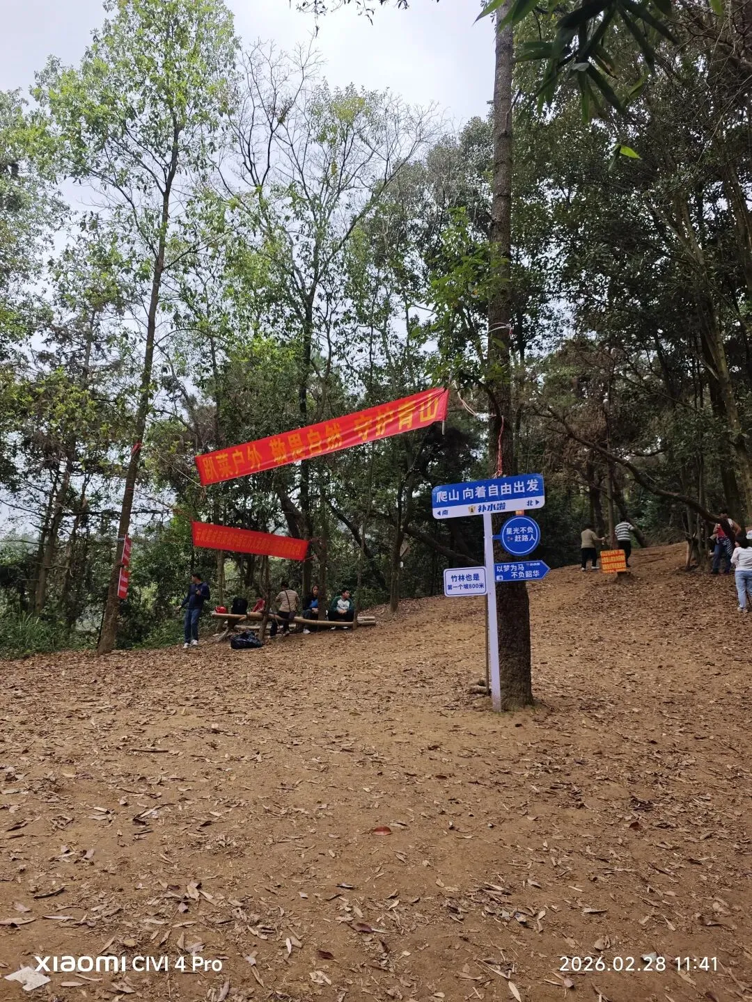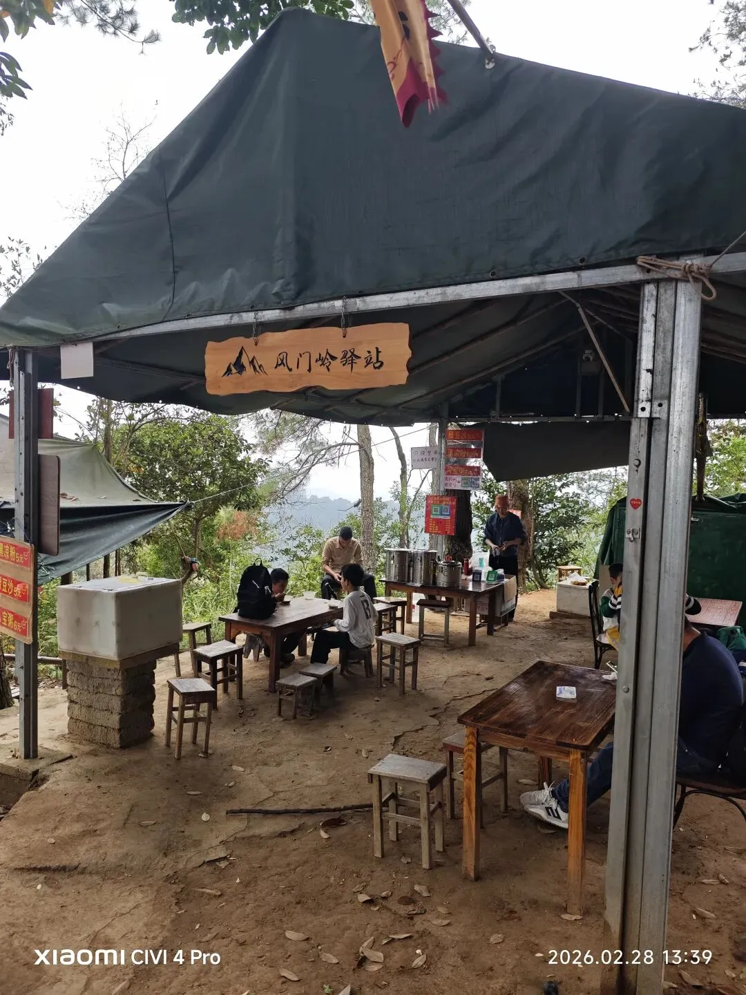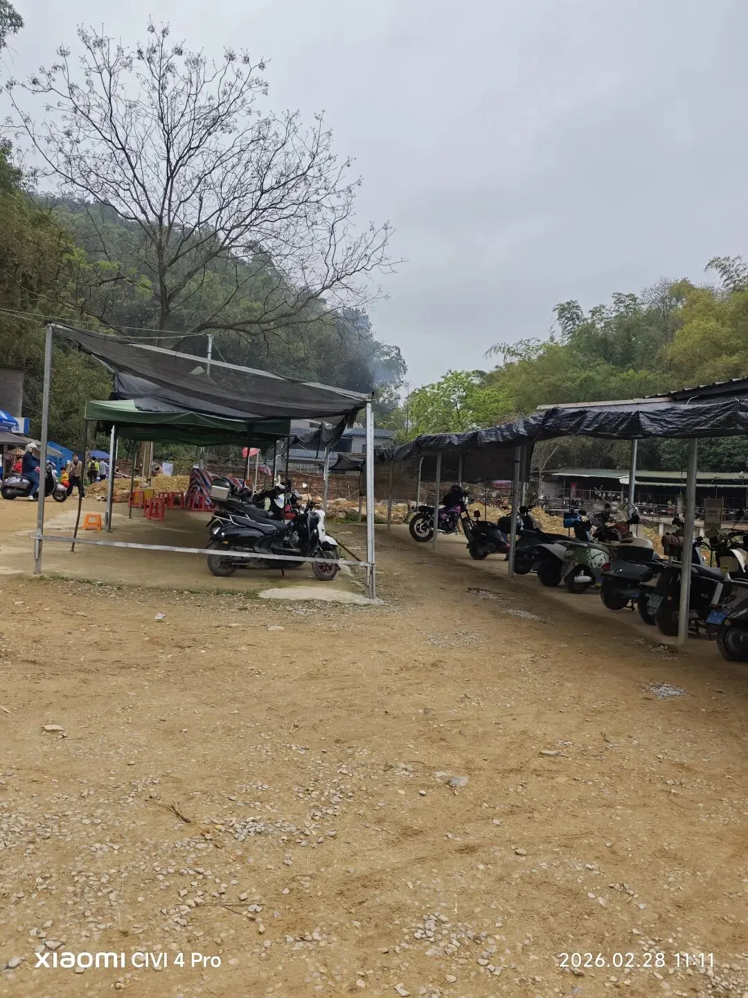 2026年2月28日我们开着电车按照高德地图导航到了天雹水库小卖部。 到达小卖部往前一百米处,搭有两个简易的车棚,车棚里悬挂一块"停车两元"的牌子。路的两边,有几位当地菜农摆摊,卖青菜,卖饮料。一个小水塘旁边,村民还开了一家餐饮店。我心想,一个未经开发的爬山路线,竟给附近村民带来新的收入。我问保管车辆的大爷说,这里附近有公厕吗,大爷指着车棚旁边的一个小木屋说"那个就是厕所,但是上一次厕所,要收费一元” 果然,有人的地方,就有烟火,就有江湖。