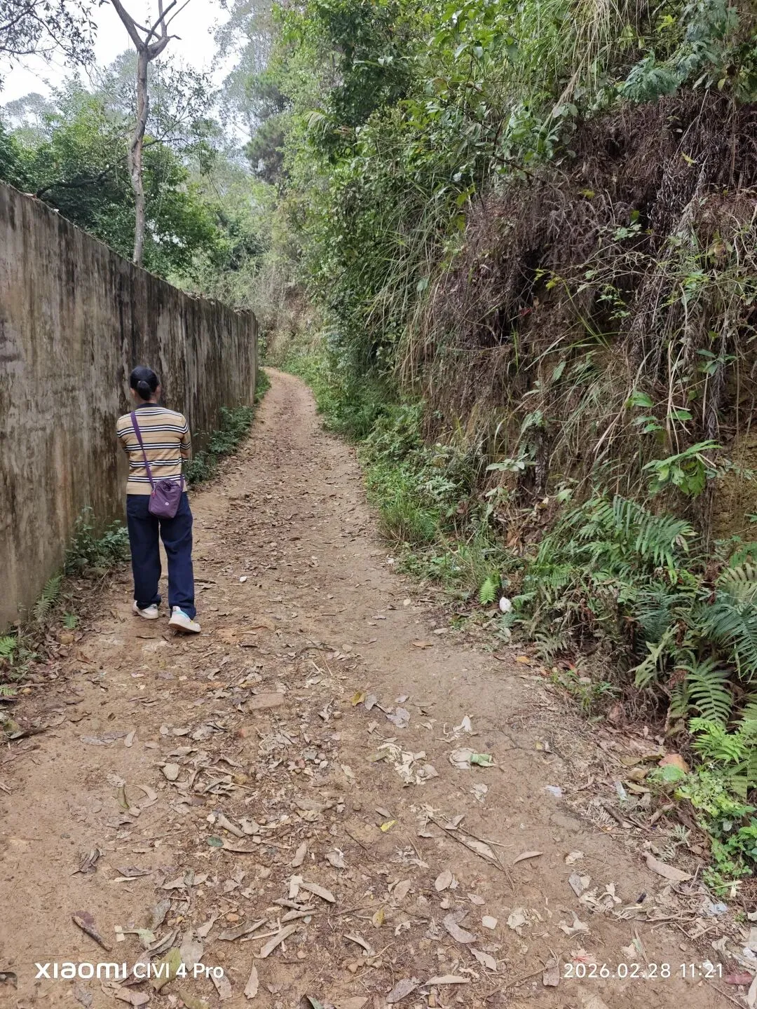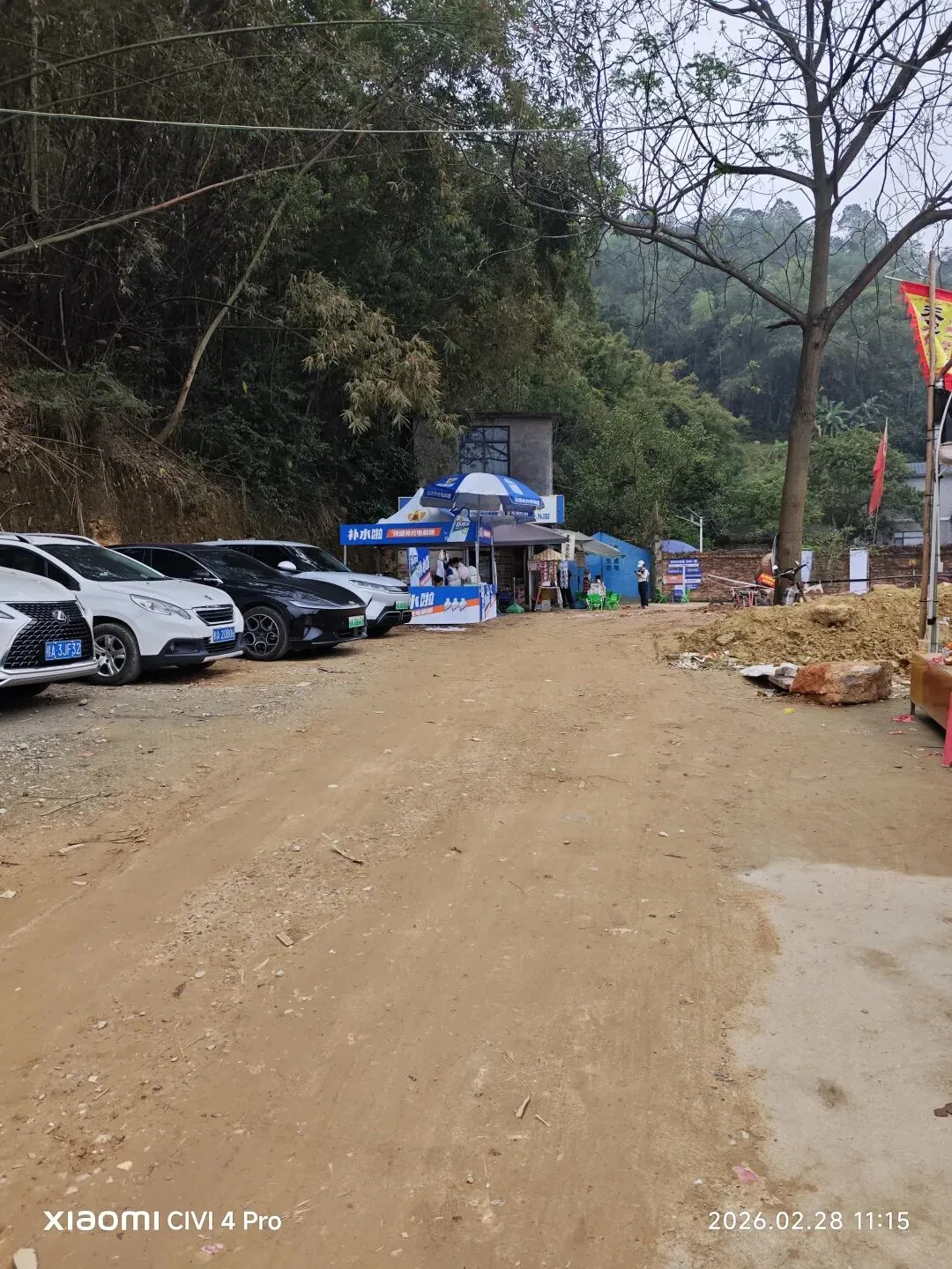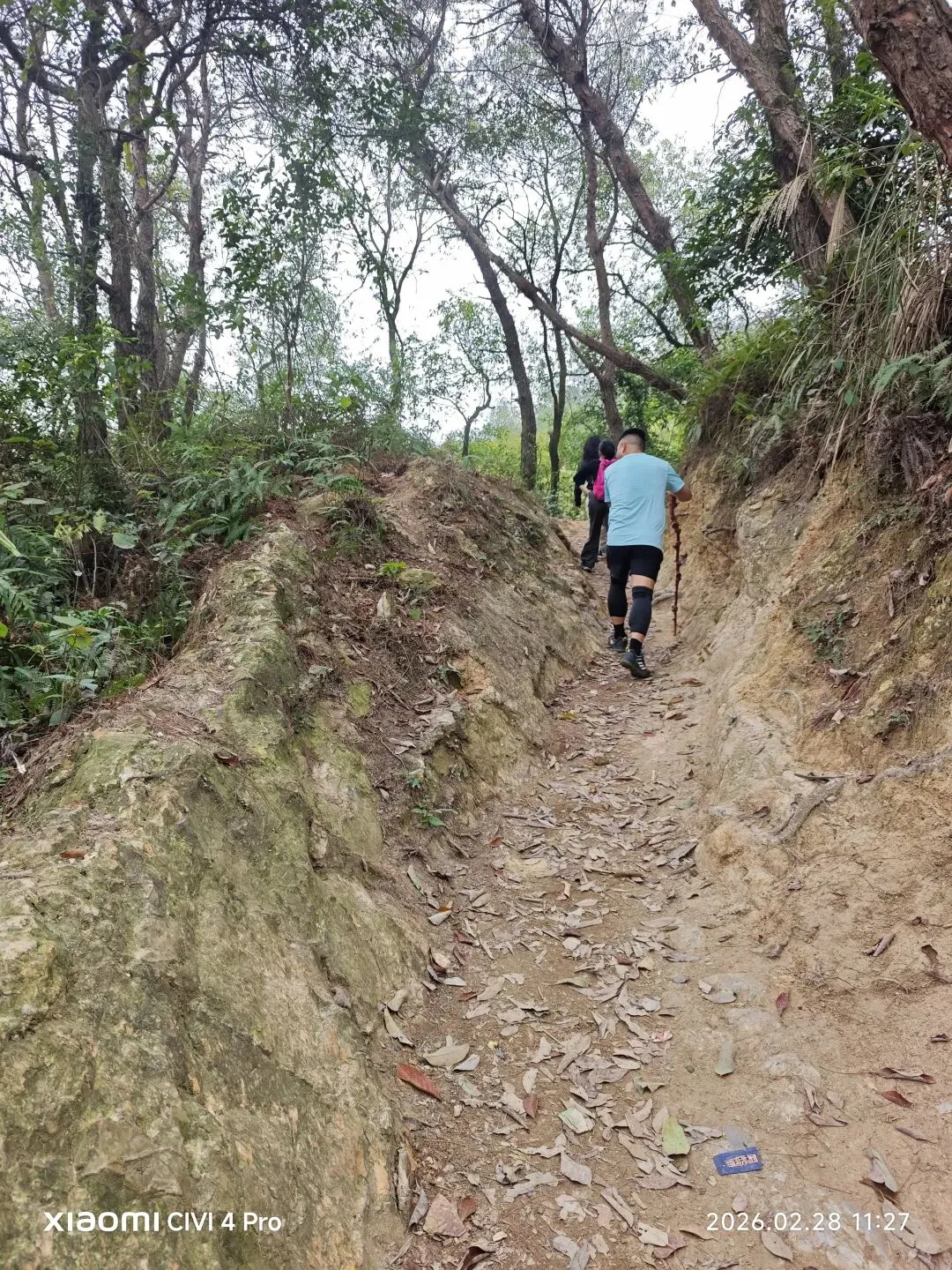 2026年2月28日我们开着电车按照高德地图导航到了天雹水库小卖部。 到达小卖部往前一百米处,搭有两个简易的车棚,车棚里悬挂一块"停车两元"的牌子。路的两边,有几位当地菜农摆摊,卖青菜,卖饮料。一个小水塘旁边,村民还开了一家餐饮店。我心想,一个未经开发的爬山路线,竟给附近村民带来新的收入。我问保管车辆的大爷说,这里附近有公厕吗,大爷指着车棚旁边的一个小木屋说"那个就是厕所,但是上一次厕所,要收费一元” 果然,有人的地方,就有烟火,就有江湖。