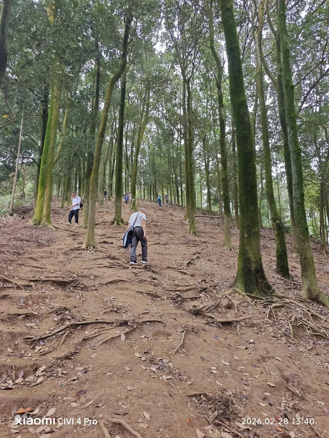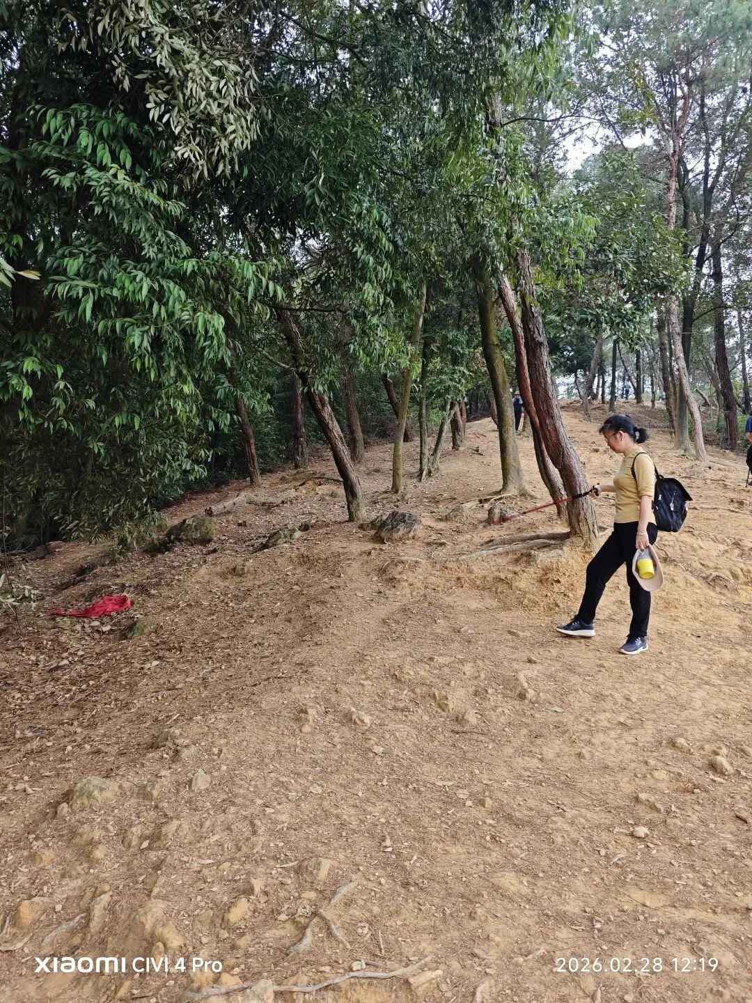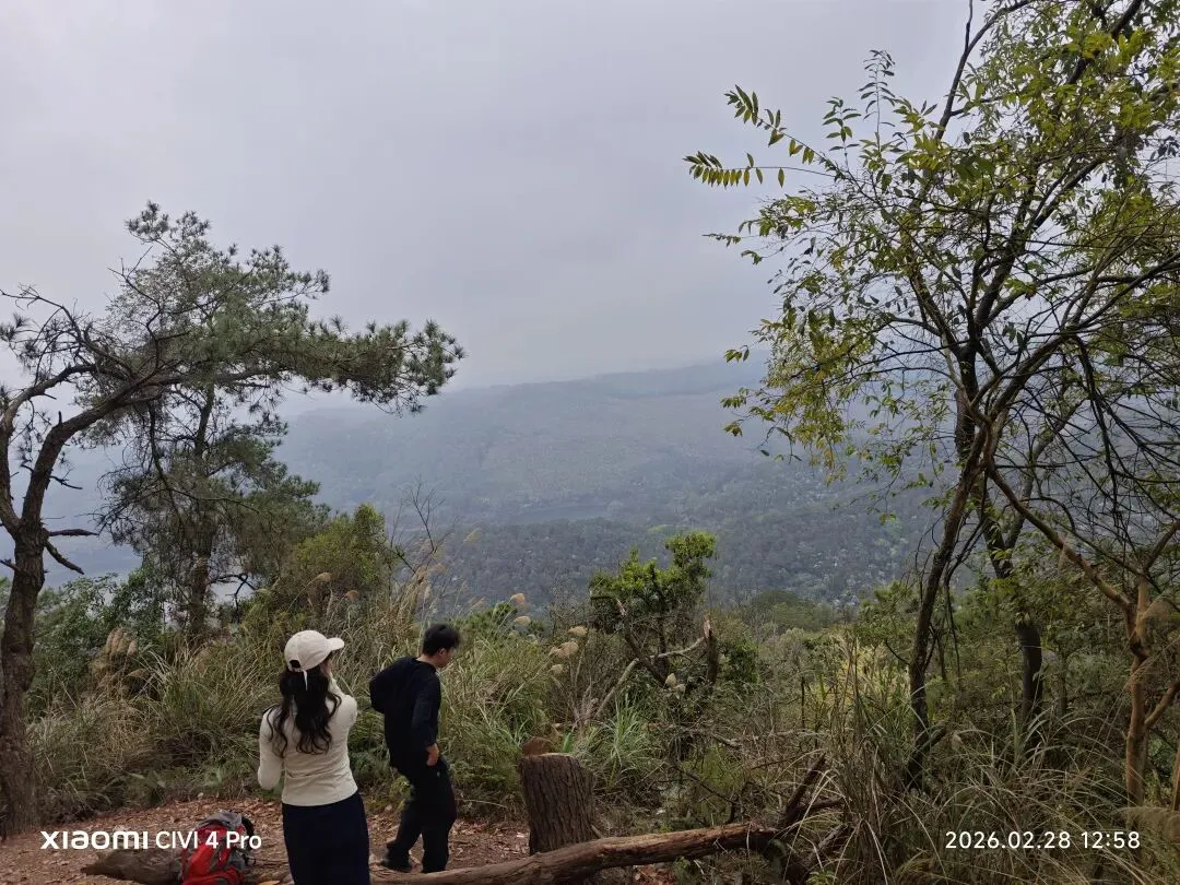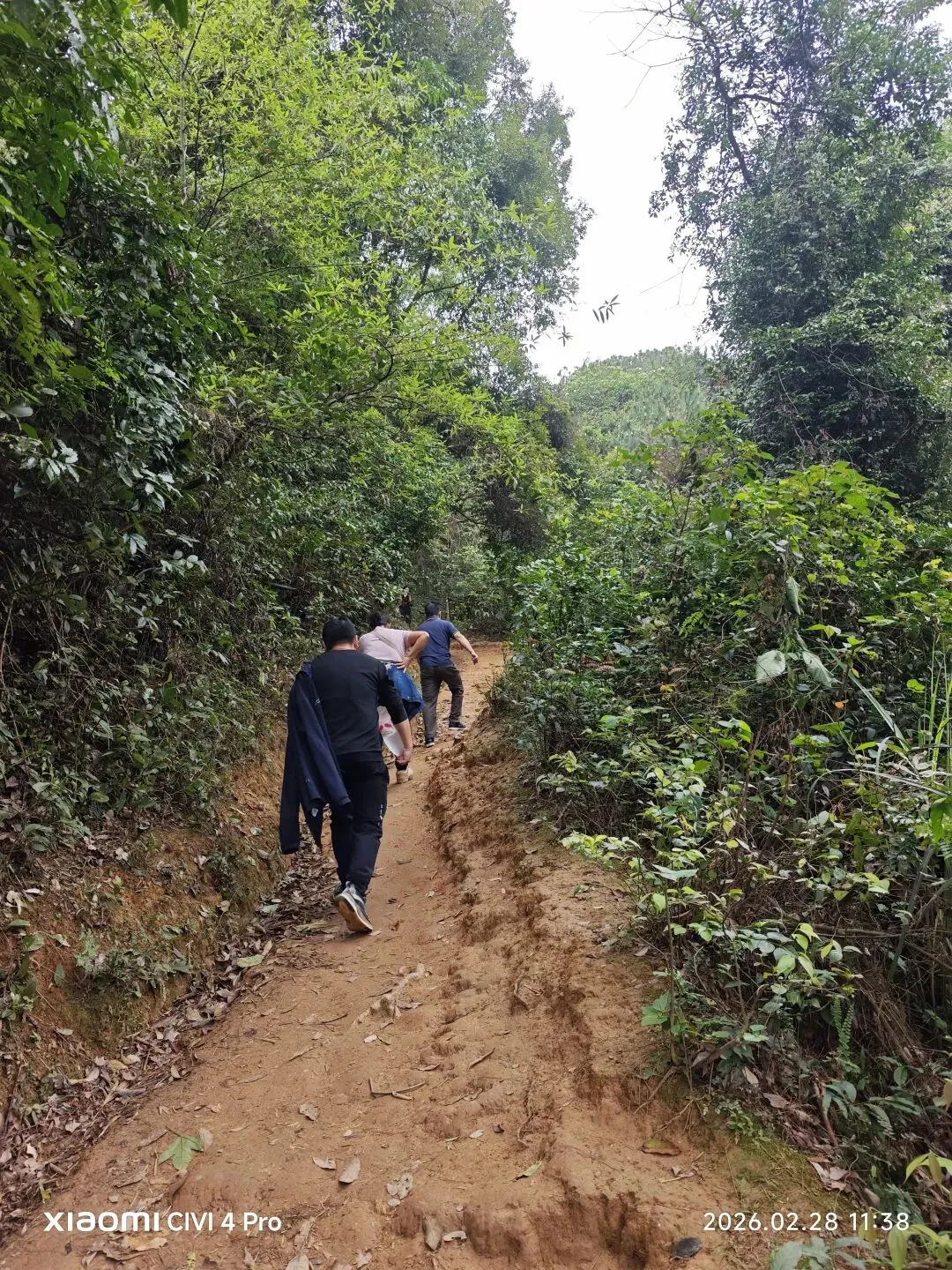 2026年2月28日我们开着电车按照高德地图导航到了天雹水库小卖部。 到达小卖部往前一百米处,搭有两个简易的车棚,车棚里悬挂一块"停车两元"的牌子。路的两边,有几位当地菜农摆摊,卖青菜,卖饮料。一个小水塘旁边,村民还开了一家餐饮店。我心想,一个未经开发的爬山路线,竟给附近村民带来新的收入。我问保管车辆的大爷说,这里附近有公厕吗,大爷指着车棚旁边的一个小木屋说"那个就是厕所,但是上一次厕所,要收费一元” 果然,有人的地方,就有烟火,就有江湖。