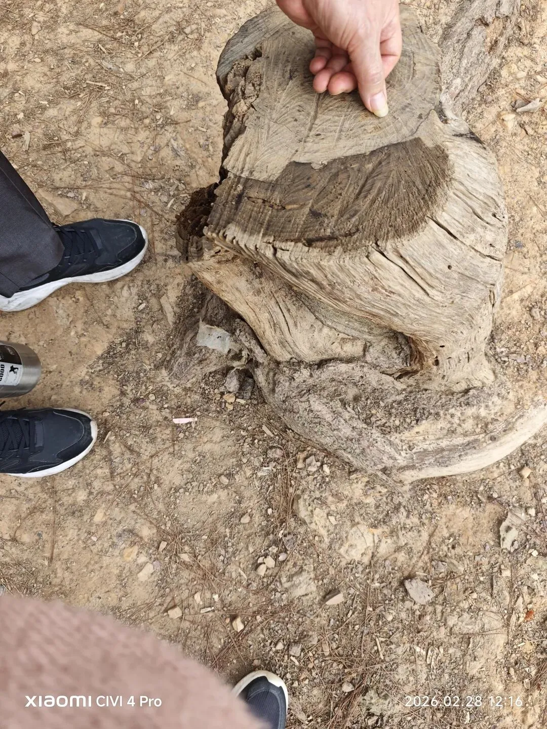 同伴指着一棵被砍伐的松树说:“数一下树芯的圆圈,一圈代表一年树龄。一圈、两圈……二十三圈,这些松树至少种了二十多年。”