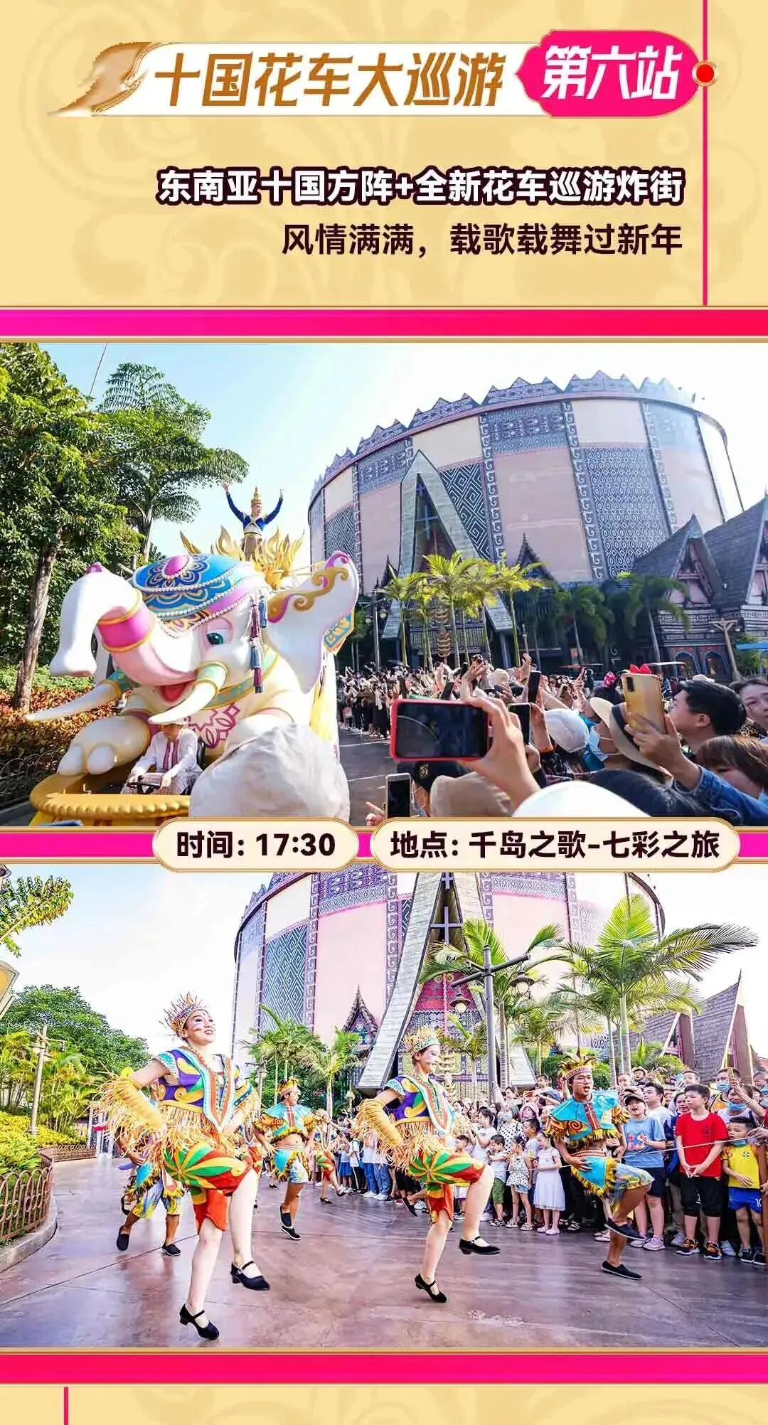东南亚风情街→伴你飞翔→马尼拉马尼拉→寻找鱼尾狮→梦幻转马→骠国乐→走进吴哥→千岛之歌→塔銮盛典→拉玛传奇→空中飞舞→相约下龙湾→七彩之旅→马六甲勇士