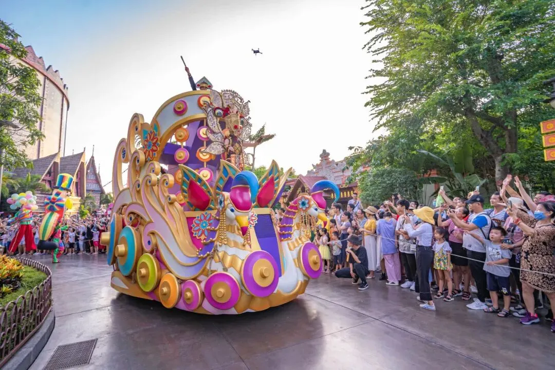 园区内除了东盟十国地标建筑,让人玩到嗨的游乐设施,还有独具东南亚风情的歌舞表演不容错过。身穿东南亚各国传统服饰的演员载歌载舞,欢快的音乐和和多元的互动,可使游客感受到东盟十国的特色与热情。