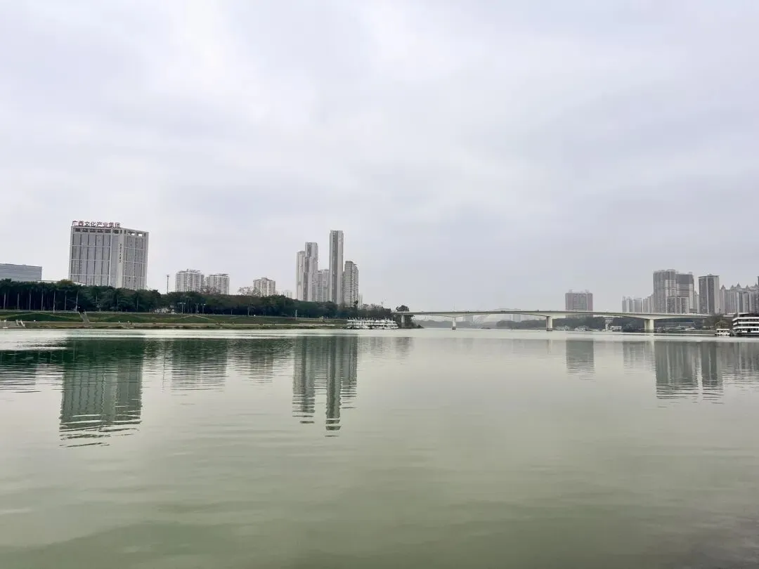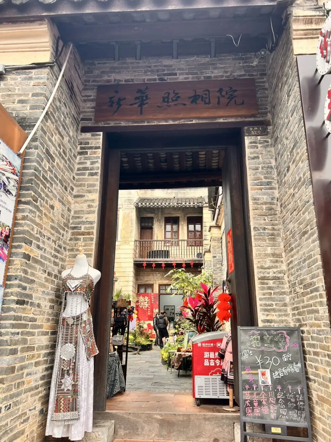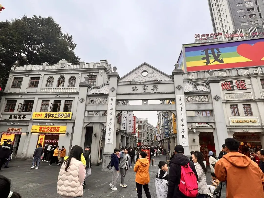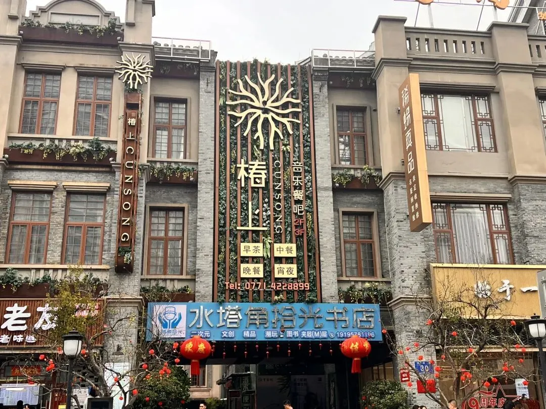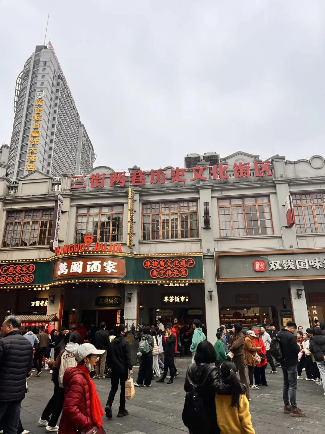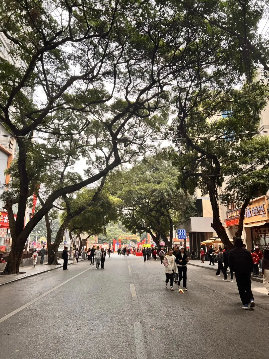 就是在这个可爱的小老头儿这儿买的,不知道他说的是不是南宁话,有点好听,也有点好玩。 对了,差点忘了,广西还有一种东西很好吃,叫油茶,我们是在瑶王府吃的,应该比较正宗吧。黄澄澄的油茶,拌上各种佐料,不能太淡,不然味道会很怪,加点盐就非常好喝了,我们一家四口喝完了一满盆😀。广西的美食挺多,而且不贵,即使在景区也算良心价。 初三上午女儿身体还不算爽利,儿子也留在酒店赶作业,孙同学陪着他们,我一个人去了三街两巷。三街两巷是南宁有名的历史文化街区,由兴宁路、民生路、解放路三条步行街及金狮巷、银狮巷两条古巷组成,整体范围挺大的,查了下资料,核心区域占地约150亩,建筑面积超30万平方米。但由于核心区与周边新建商业街区、老城区的新旧建筑融合的非常好,所以实际给人的感觉要大的多。三街两巷是南宁历史文化的发源地,核心街区始建于宋代,为古邕州繁华之地,南宁城即是在此基础上发展起来的,里面有多老建筑,见证了南宁历史文化的变迁。三街两巷包含了城隍庙、邓颖超纪念馆、南宁建制博物馆、中华大戏院等二十多处文物及历史建筑,整体色彩为青砖黛瓦,多为骑楼建筑,很有岭南之韵,部分建筑融入了西方元素,有种即古老又时尚的时空交错感,这也是三街两巷明显区别于我看过的其他城市老街区,如成都宽窄巷子、重庆磁器口等。 春节期间有灯会,白天免费,五点以后进去要收费,包括邕江边上打铁花表演,用个围挡圈起来收费,给我逗笑了。文旅部门格局小了,可以向我老家河南文旅学学,但别学云南,虽然我就在云南,但云南文旅只能说命好,靠天吃饭。 三街两巷紧挨邕江,可以体验邕江夜游,但我们时间没赶巧。