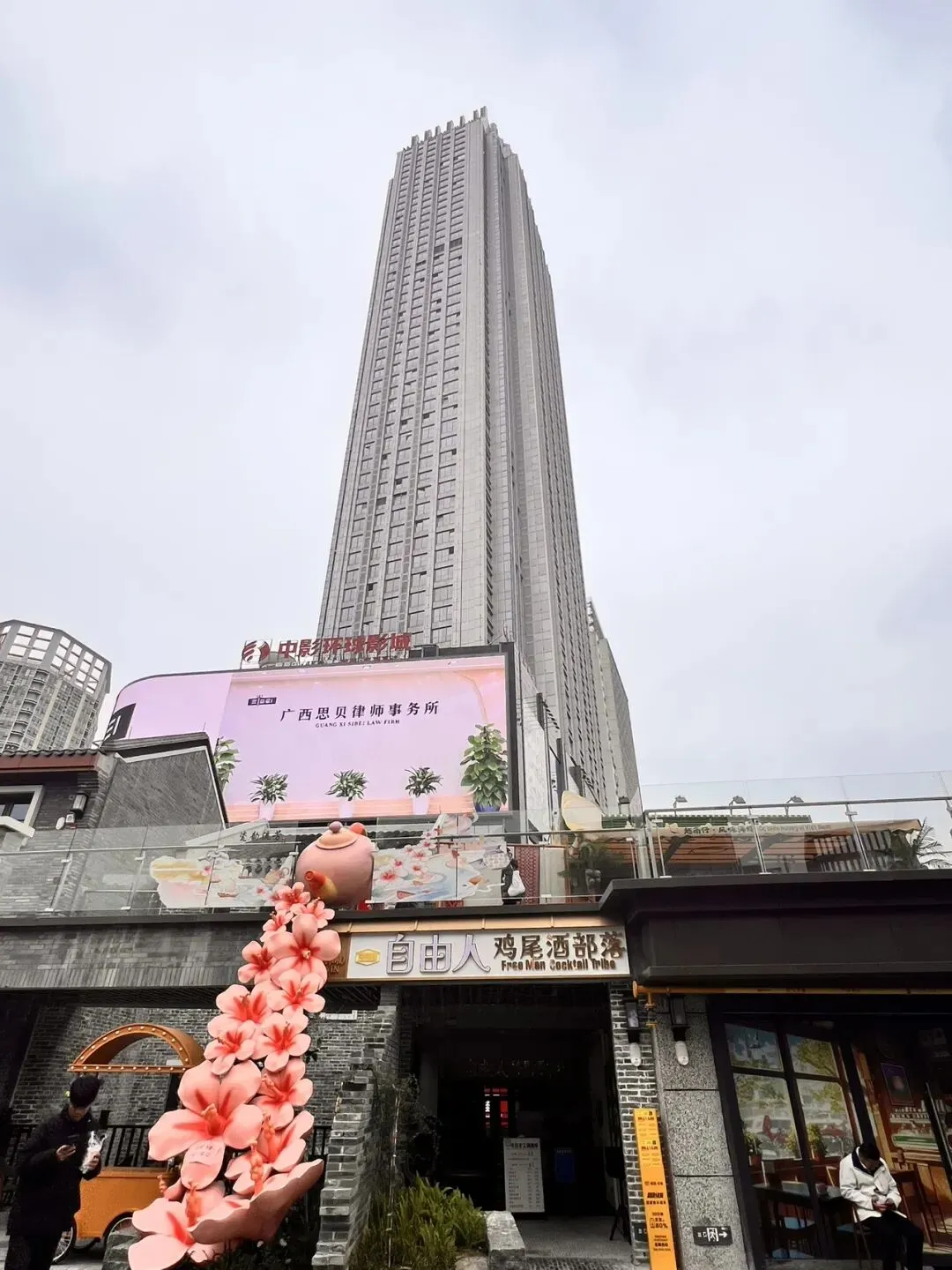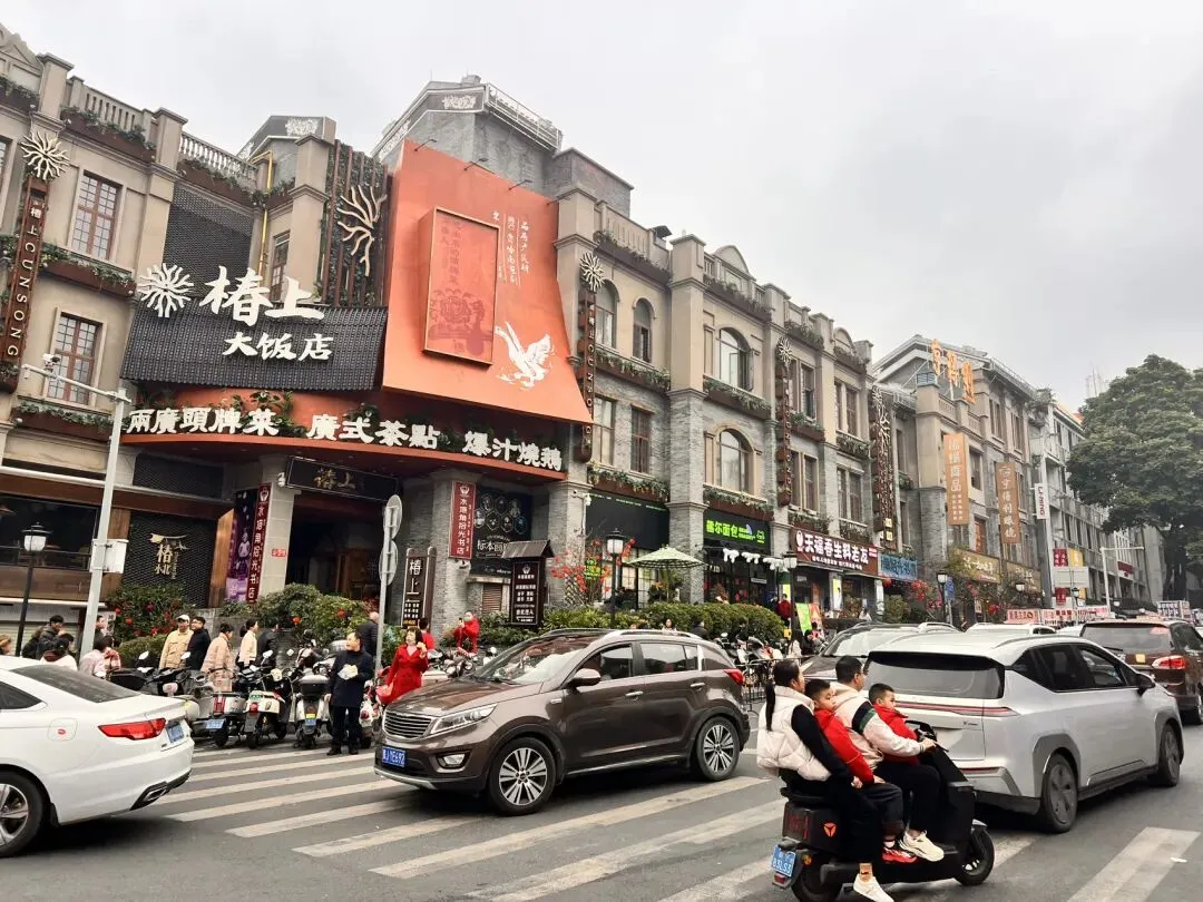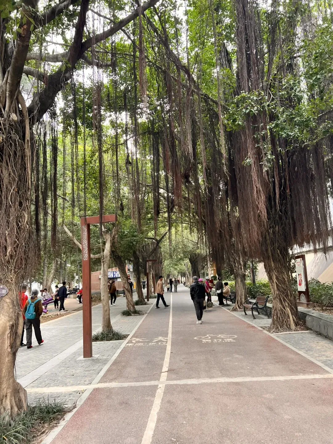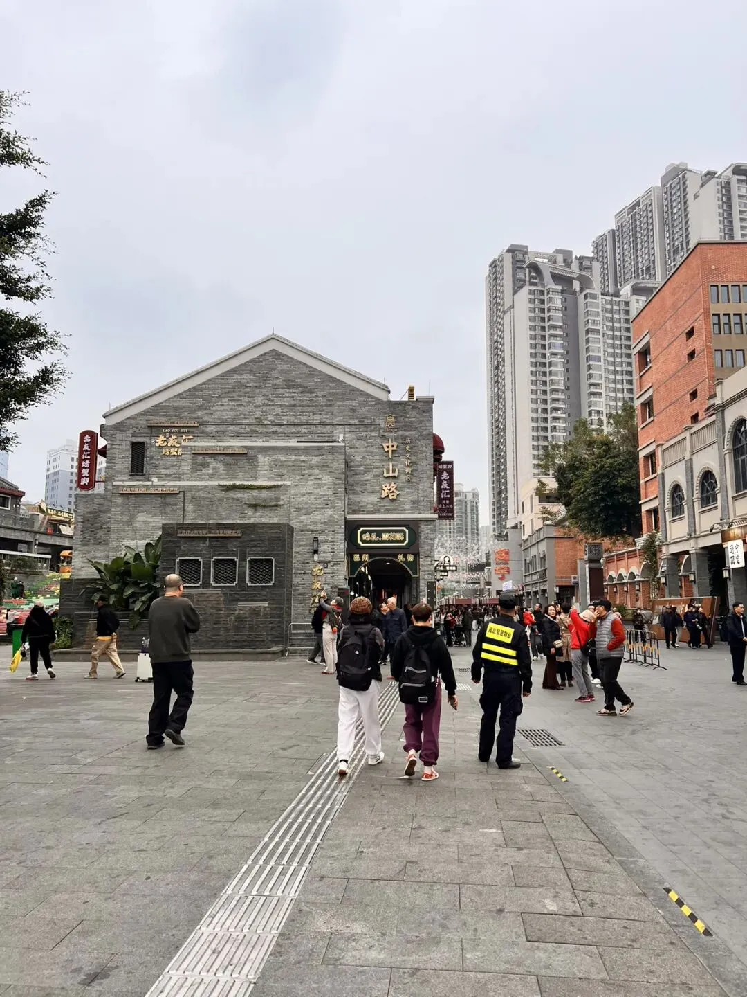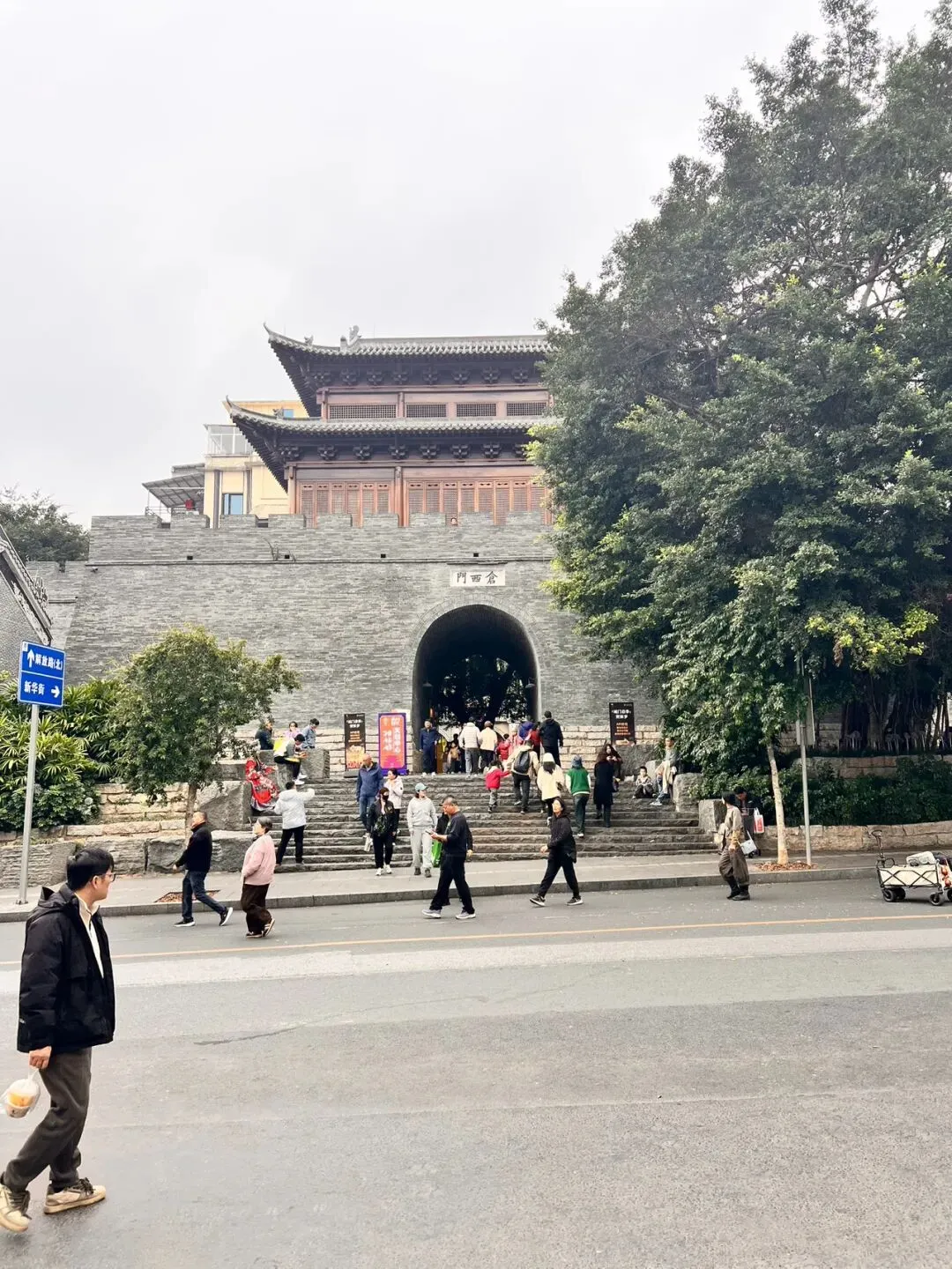 就是在这个可爱的小老头儿这儿买的,不知道他说的是不是南宁话,有点好听,也有点好玩。 对了,差点忘了,广西还有一种东西很好吃,叫油茶,我们是在瑶王府吃的,应该比较正宗吧。黄澄澄的油茶,拌上各种佐料,不能太淡,不然味道会很怪,加点盐就非常好喝了,我们一家四口喝完了一满盆😀。广西的美食挺多,而且不贵,即使在景区也算良心价。 初三上午女儿身体还不算爽利,儿子也留在酒店赶作业,孙同学陪着他们,我一个人去了三街两巷。三街两巷是南宁有名的历史文化街区,由兴宁路、民生路、解放路三条步行街及金狮巷、银狮巷两条古巷组成,整体范围挺大的,查了下资料,核心区域占地约150亩,建筑面积超30万平方米。但由于核心区与周边新建商业街区、老城区的新旧建筑融合的非常好,所以实际给人的感觉要大的多。三街两巷是南宁历史文化的发源地,核心街区始建于宋代,为古邕州繁华之地,南宁城即是在此基础上发展起来的,里面有多老建筑,见证了南宁历史文化的变迁。三街两巷包含了城隍庙、邓颖超纪念馆、南宁建制博物馆、中华大戏院等二十多处文物及历史建筑,整体色彩为青砖黛瓦,多为骑楼建筑,很有岭南之韵,部分建筑融入了西方元素,有种即古老又时尚的时空交错感,这也是三街两巷明显区别于我看过的其他城市老街区,如成都宽窄巷子、重庆磁器口等。 春节期间有灯会,白天免费,五点以后进去要收费,包括邕江边上打铁花表演,用个围挡圈起来收费,给我逗笑了。文旅部门格局小了,可以向我老家河南文旅学学,但别学云南,虽然我就在云南,但云南文旅只能说命好,靠天吃饭。 三街两巷紧挨邕江,可以体验邕江夜游,但我们时间没赶巧。