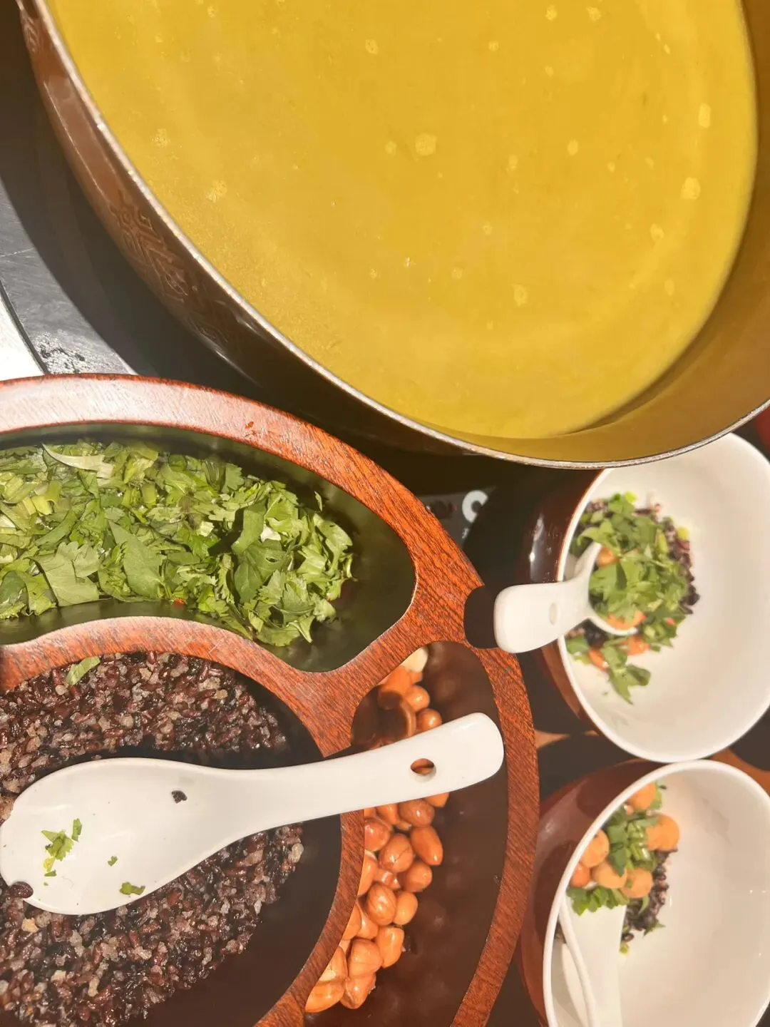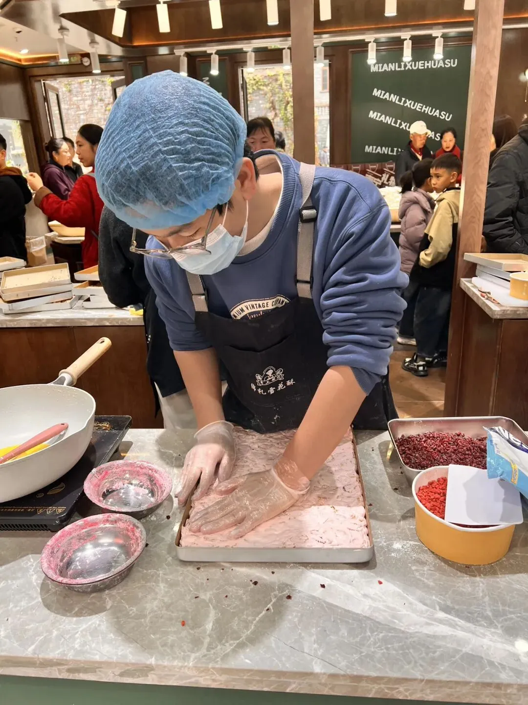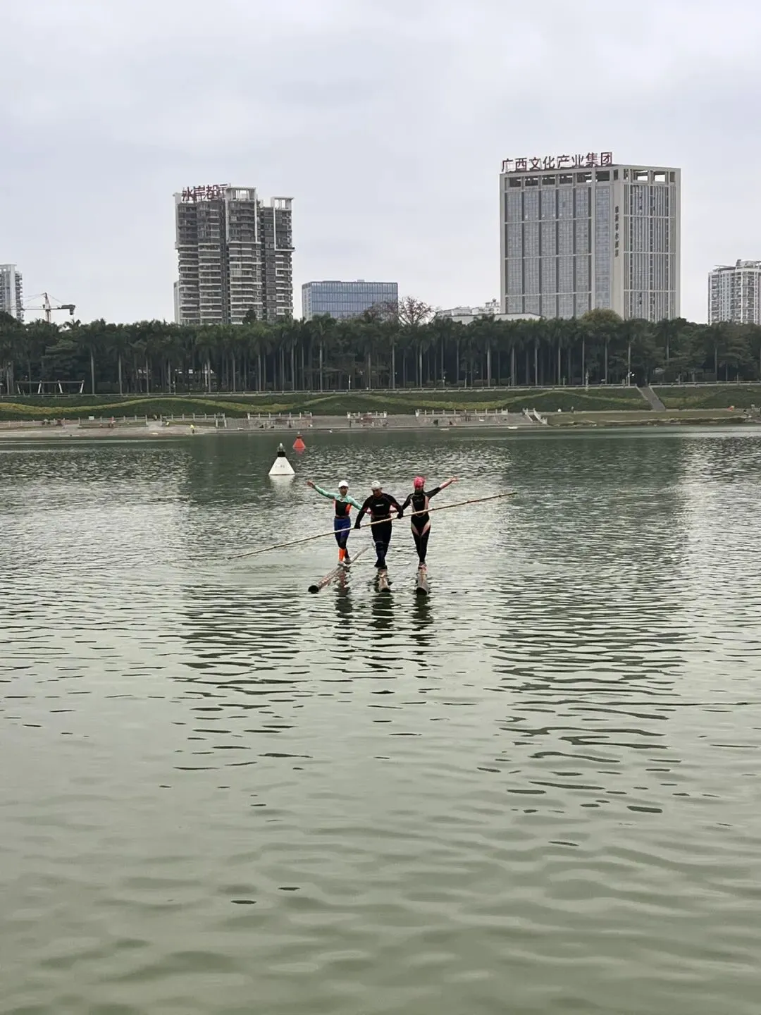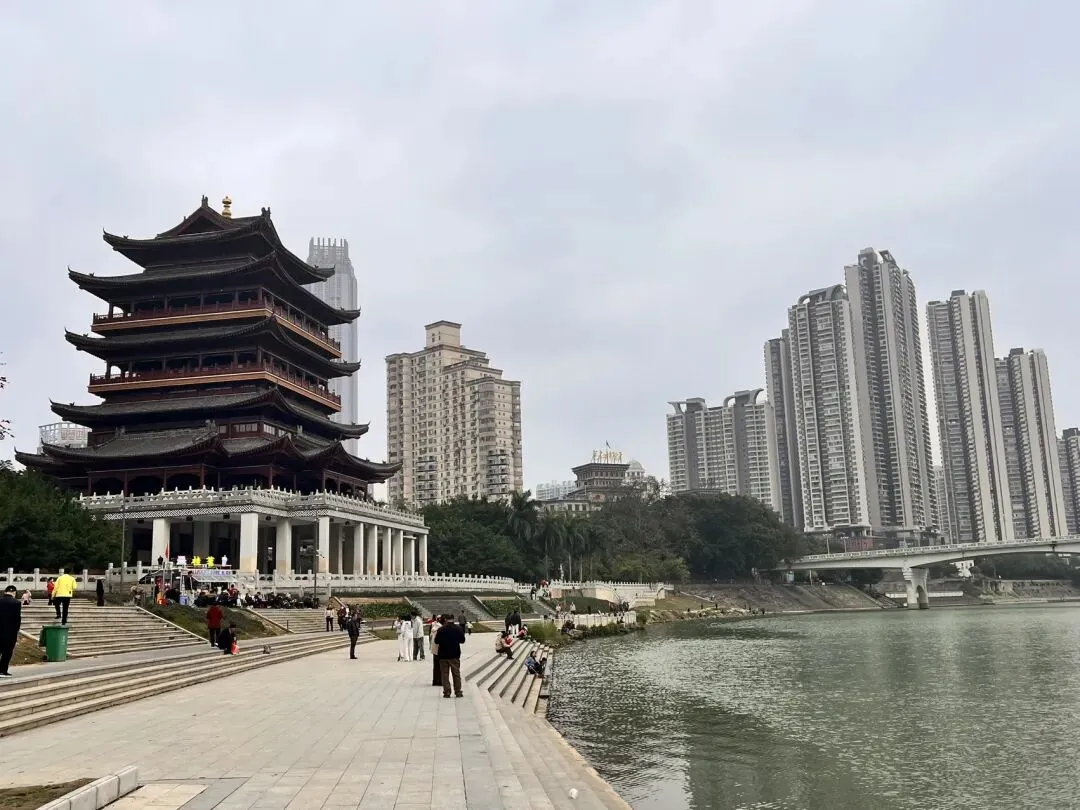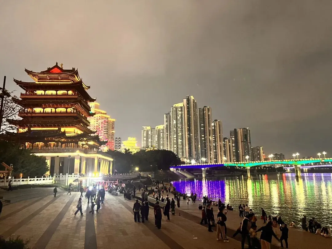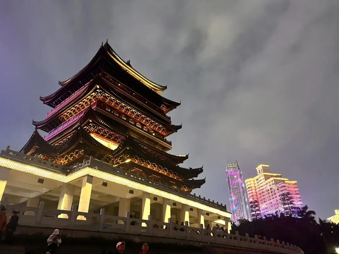 就是在这个可爱的小老头儿这儿买的,不知道他说的是不是南宁话,有点好听,也有点好玩。 对了,差点忘了,广西还有一种东西很好吃,叫油茶,我们是在瑶王府吃的,应该比较正宗吧。黄澄澄的油茶,拌上各种佐料,不能太淡,不然味道会很怪,加点盐就非常好喝了,我们一家四口喝完了一满盆😀。广西的美食挺多,而且不贵,即使在景区也算良心价。 初三上午女儿身体还不算爽利,儿子也留在酒店赶作业,孙同学陪着他们,我一个人去了三街两巷。三街两巷是南宁有名的历史文化街区,由兴宁路、民生路、解放路三条步行街及金狮巷、银狮巷两条古巷组成,整体范围挺大的,查了下资料,核心区域占地约150亩,建筑面积超30万平方米。但由于核心区与周边新建商业街区、老城区的新旧建筑融合的非常好,所以实际给人的感觉要大的多。三街两巷是南宁历史文化的发源地,核心街区始建于宋代,为古邕州繁华之地,南宁城即是在此基础上发展起来的,里面有多老建筑,见证了南宁历史文化的变迁。三街两巷包含了城隍庙、邓颖超纪念馆、南宁建制博物馆、中华大戏院等二十多处文物及历史建筑,整体色彩为青砖黛瓦,多为骑楼建筑,很有岭南之韵,部分建筑融入了西方元素,有种即古老又时尚的时空交错感,这也是三街两巷明显区别于我看过的其他城市老街区,如成都宽窄巷子、重庆磁器口等。 春节期间有灯会,白天免费,五点以后进去要收费,包括邕江边上打铁花表演,用个围挡圈起来收费,给我逗笑了。文旅部门格局小了,可以向我老家河南文旅学学,但别学云南,虽然我就在云南,但云南文旅只能说命好,靠天吃饭。 三街两巷紧挨邕江,可以体验邕江夜游,但我们时间没赶巧。