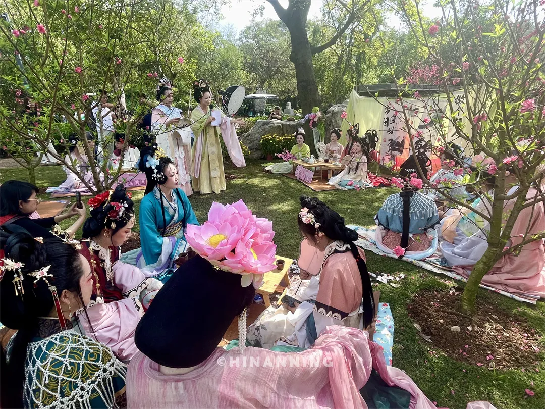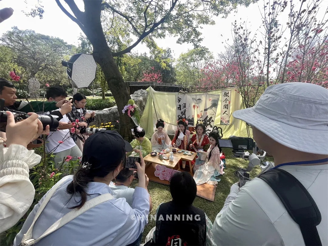 同时,为了满足游客的赏花拍照需求,南宁园博园服装租赁点推出了中华民族传统服装+简单发型的国风造型套餐。游客们可以穿上华丽的汉服,化上精致的妆容,盘起优雅的发髻,在桃花树下、花海之中留下最美的瞬间。这一套餐让拍照出片更加轻松、便利,让每一位游客都能成为春日里的主角。