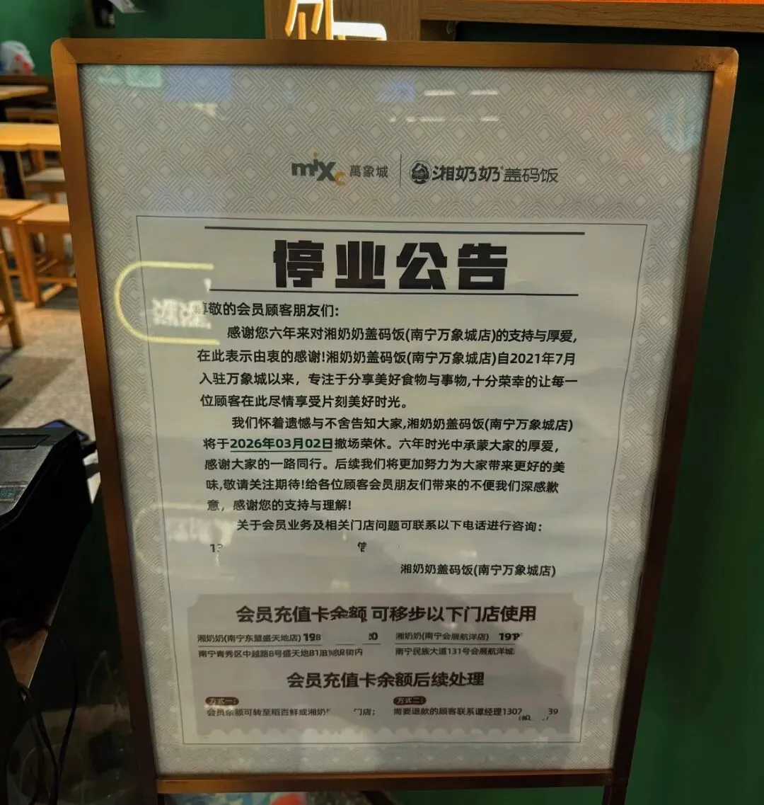 这家湘奶奶盖码饭开了这么久它也要暂停营业了,上班族们的食堂,普通人来这里逛也爱吃这家的盖码饭,因为有小菜,米饭免费加吃,价格都可以接受的,毕竟在万象城这里……
