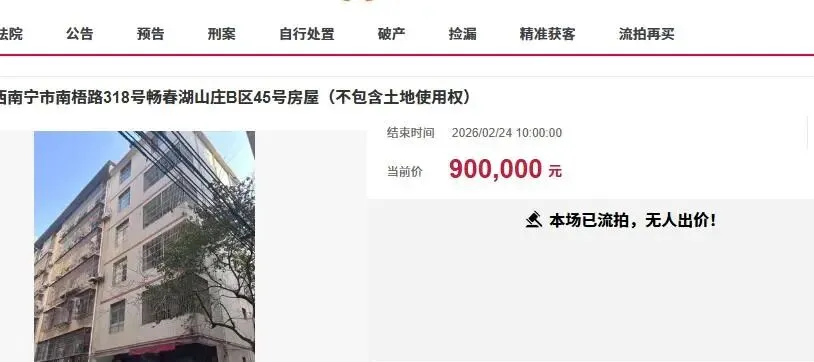 开年不利!南宁市这栋看似非常不错,位置又很好的私人楼降价拍卖了还是没有人要。