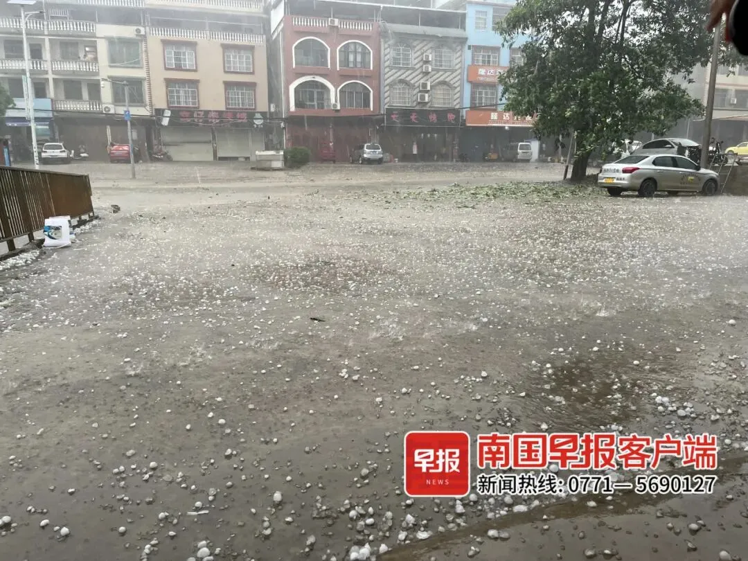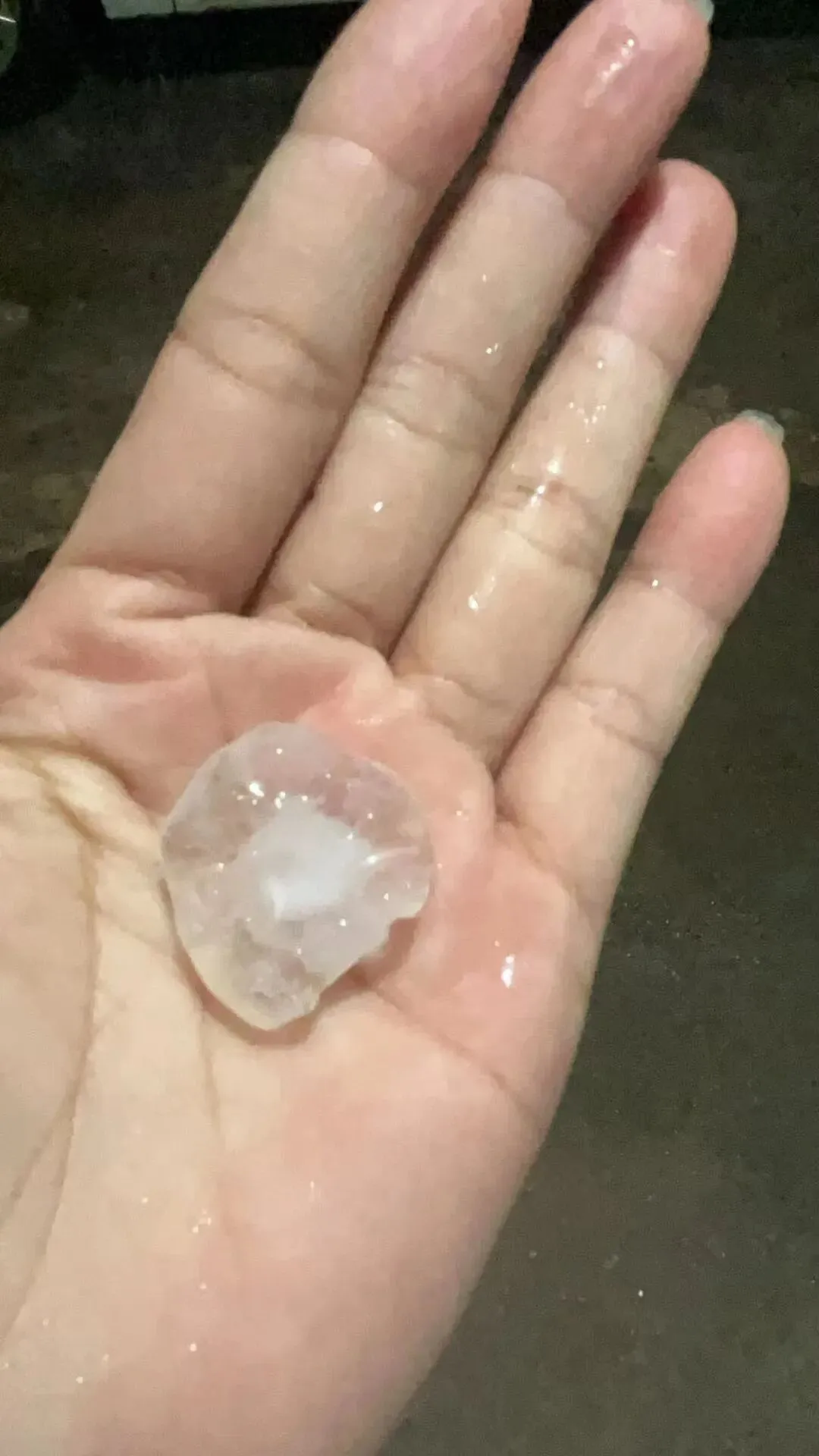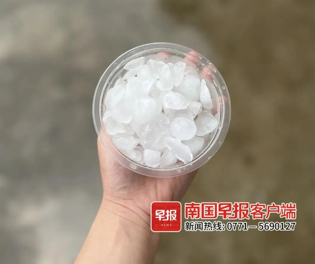 ▲4月27日18时许,南宁西乡塘区双定镇下起冰雹。网友徐女士供图