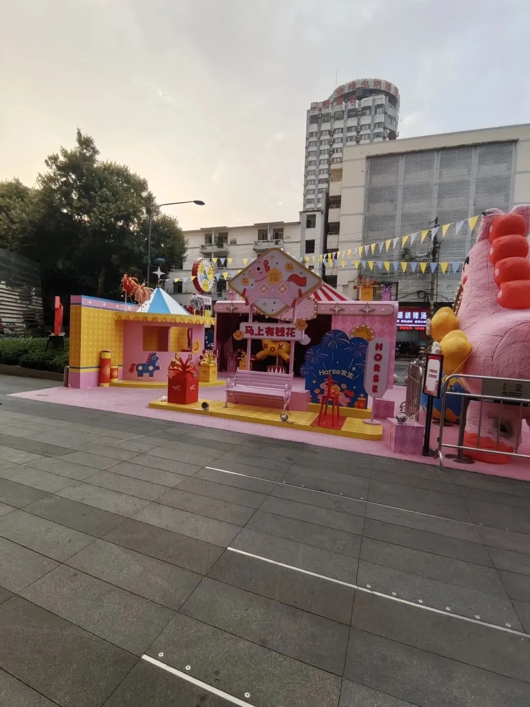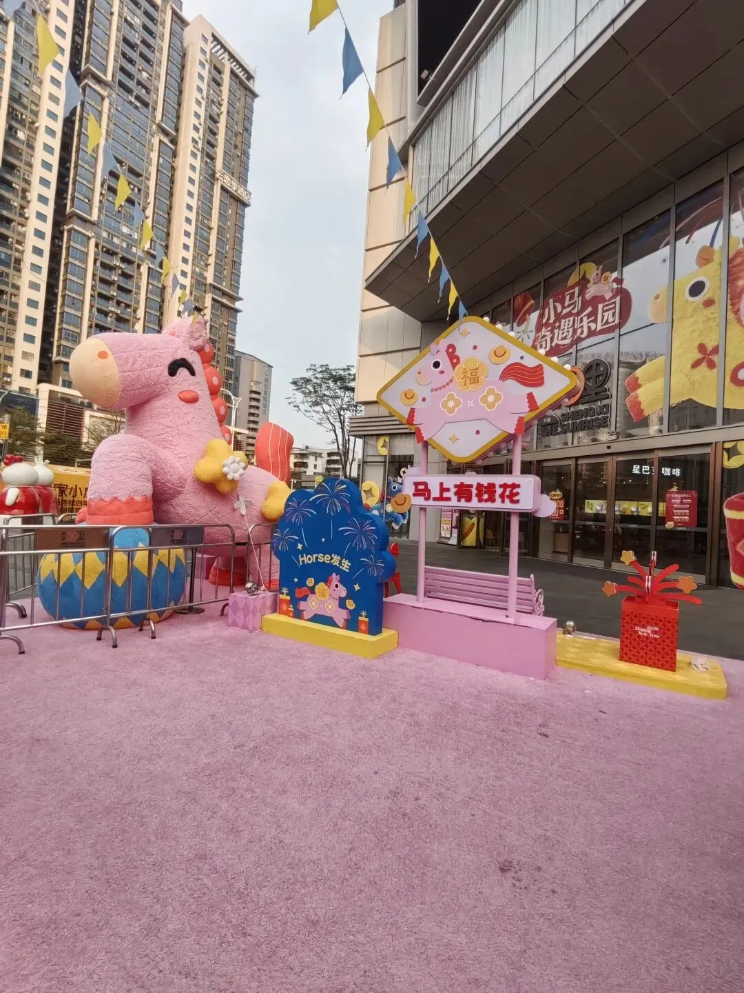 这是一个以马年为主题的人工造型,粉色元素的色系,让人看得非常的舒服和治愈!