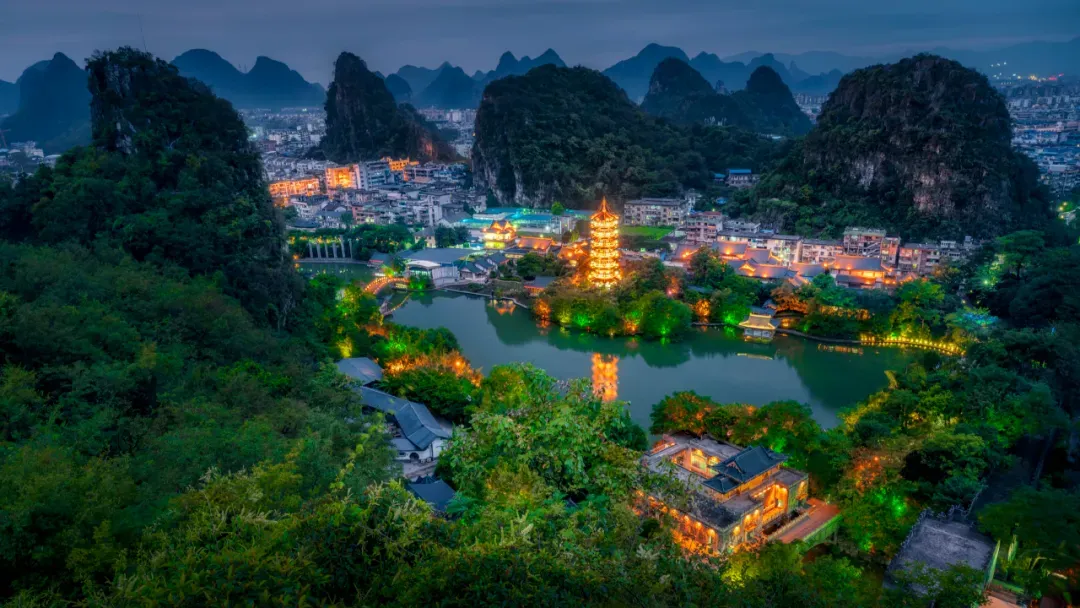 摄图网ID:501679088 广西桂林二江四湖木龙湖夜景