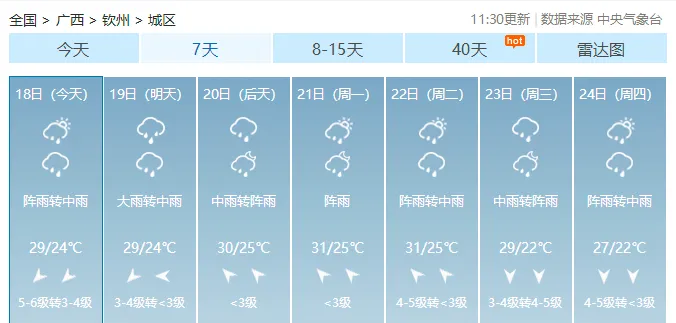 全区各市未来7天天气预报