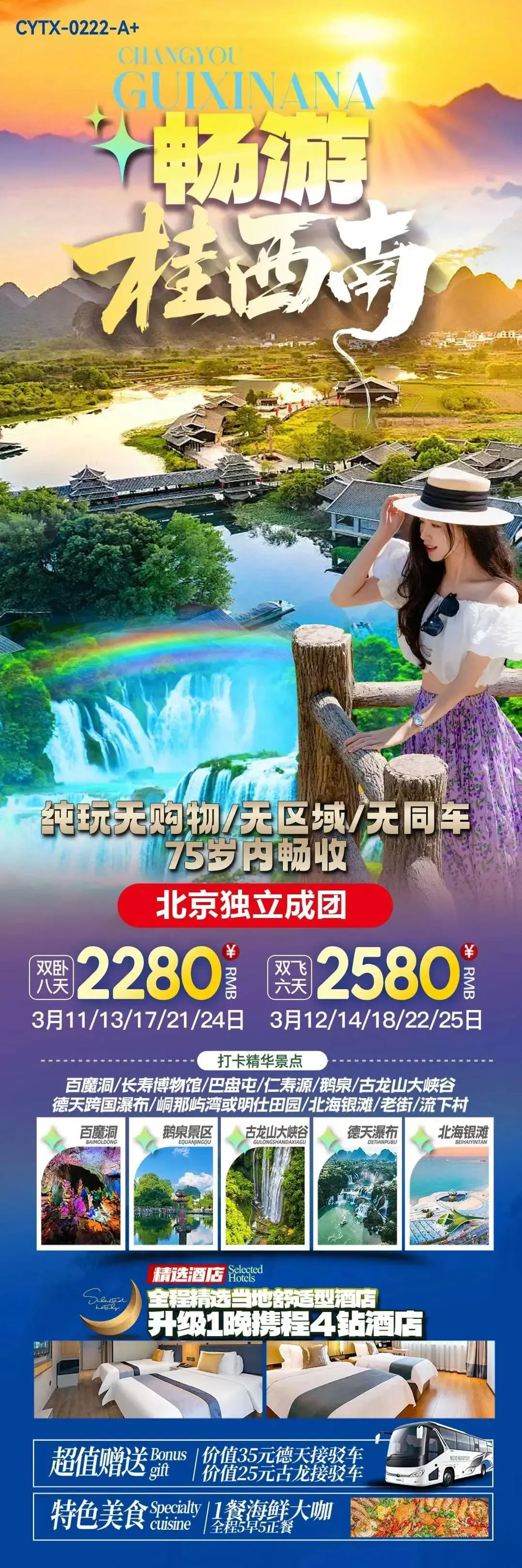 畅收中🎈【畅游桂西南】北京独立成团[玫瑰]带全陪~立减400