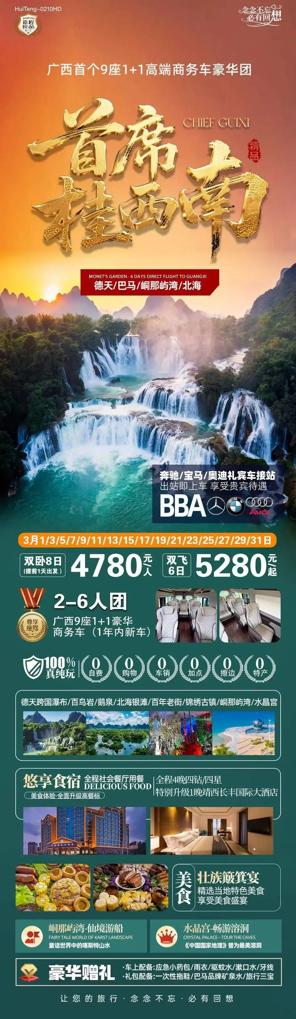 【首席桂西南】 广西首个9座1+1高端商务车豪华团,立减400