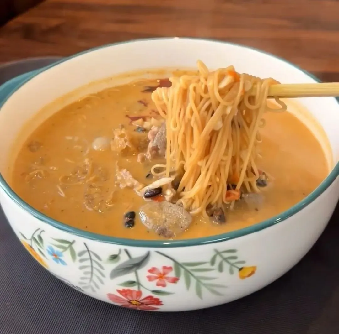 当那碗热气腾腾的老友粉端上桌时,我瞬间被治愈了。汤色很浓郁,一看就是用猪骨和鸡架慢火熬出来的高汤。