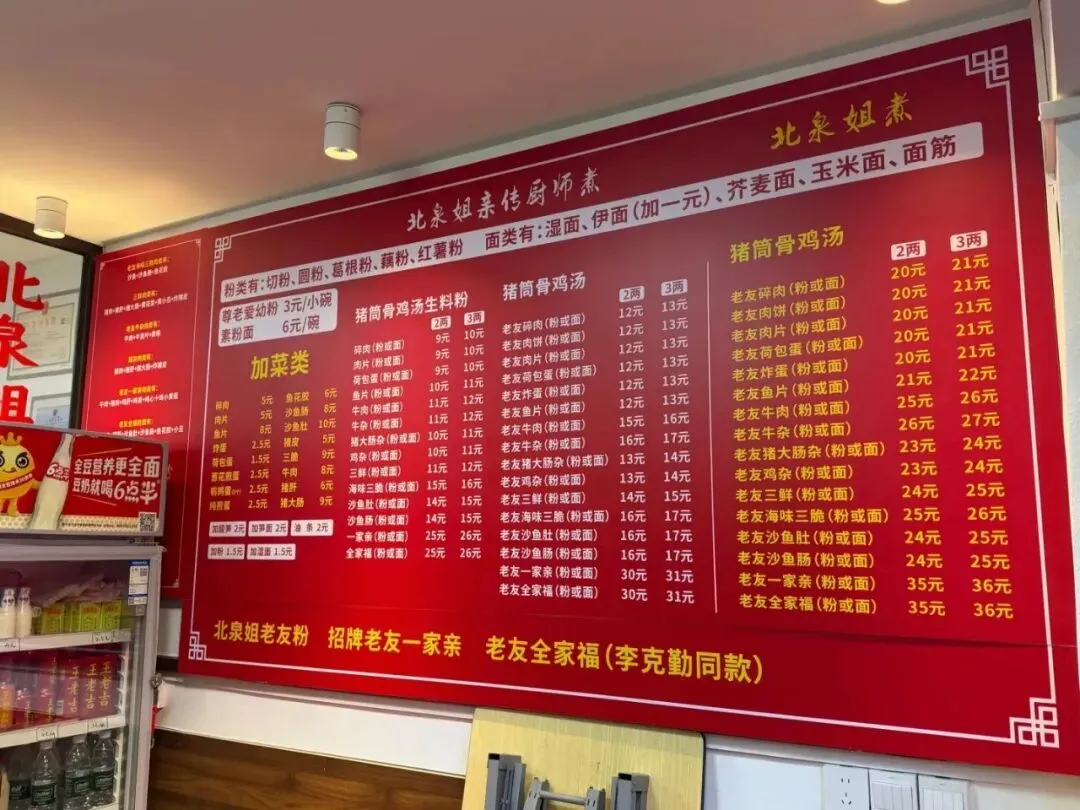 其实一直以来,北泉姐这家店的评论区都是褒贬不一,有人说还是老味道、吃的是情怀,也有人觉得不如从前、不值得排队。众口难调本来就是美食圈最正常的事,每个人口味不同、期待不一样,评价自然有高有低。但我一直觉得,吃东西这件事,真没必要太较真、更不用上纲上线。喜欢吃,就多去几次,哪怕排会儿队,能吃到自己惦记的那口味道,就是值得的;不合口味,不去就好,不必为了一碗粉争来争去,更没必要去贬低、抬杠,搞得大家都不开心。美食本来就是图个开心、图个舒服,不是用来评判对错、分出高低的。有人爱它的烟火气,有人念它的老情怀,有人就是吃不惯这个味,都很正常。尊重每个人的口味,也尊重自己的感受,喜欢就去追求,不喜欢就 quietly 路过,简简单单、舒舒服服,才是吃粉最该有的样子。现在,北泉姐又重新回来了,那碗让我们魂牵梦萦的老友粉,也回来了。