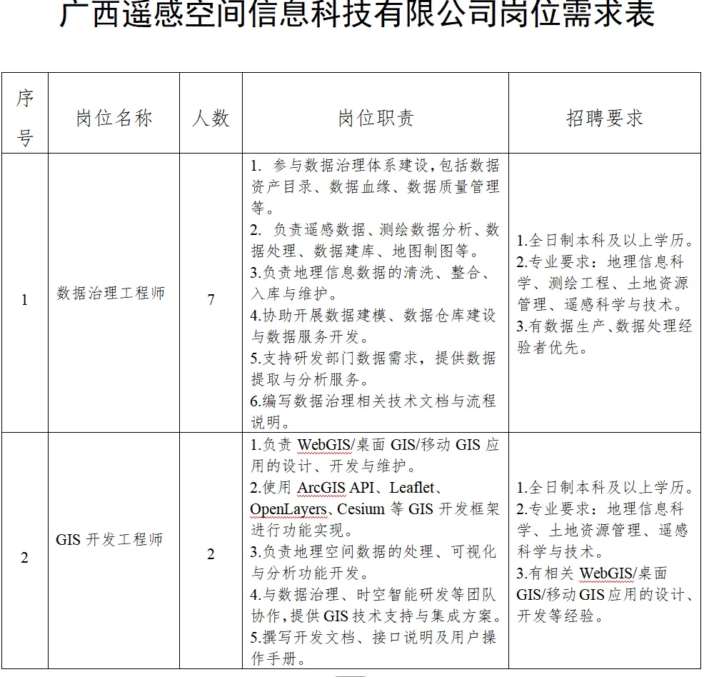 本次招聘共计9人,其中数据治理工程师7人,GIS开发工程师2人。