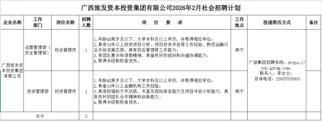 详见《广西兴工投资集团有限公司招聘计划表》
