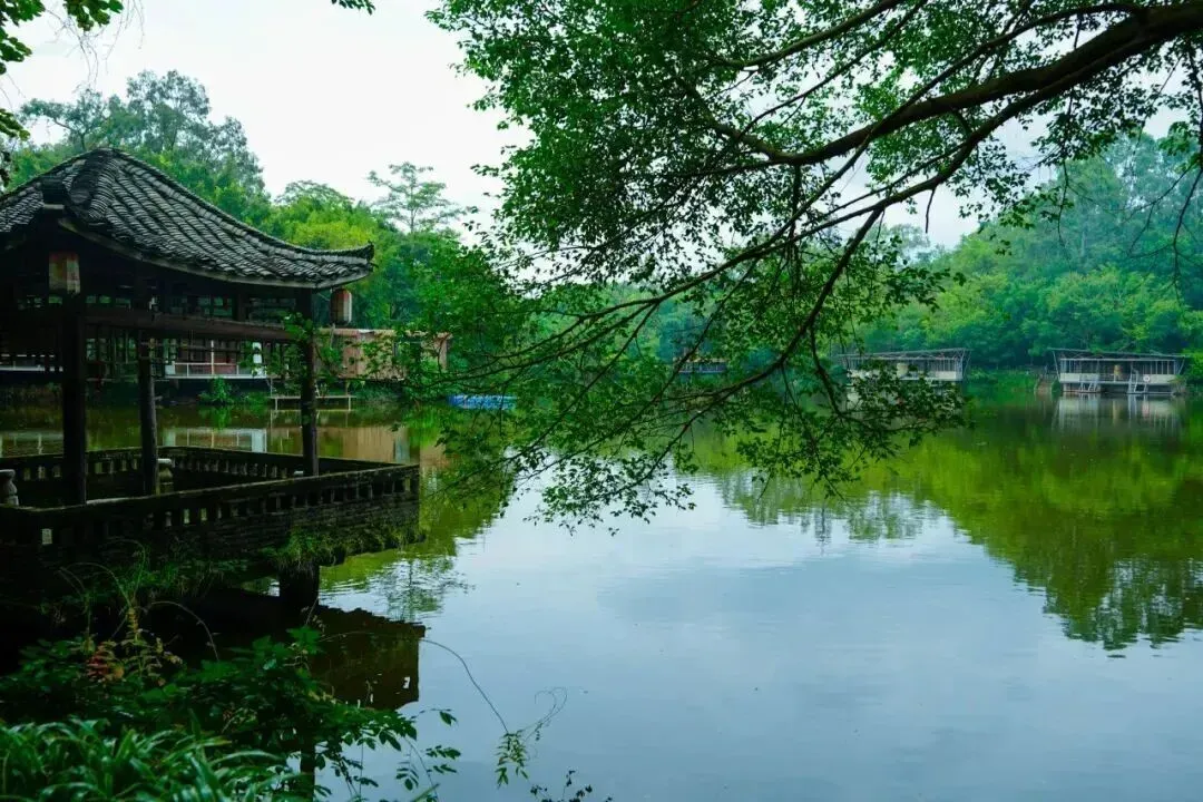 如果你不赶时间。你可以望着湖面发呆,看云影徘徊,偶尔有风穿过竹林。孩子们在旁嬉戏,三五知己歪在藤椅上闲话家常。