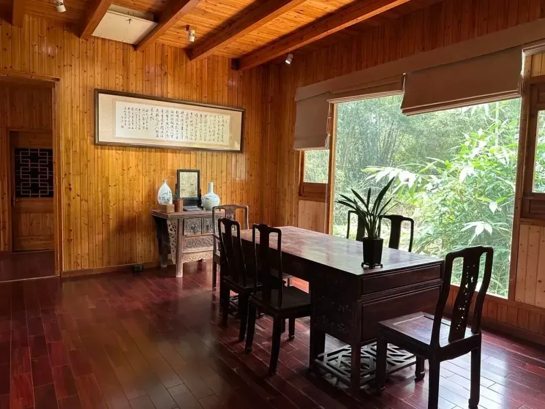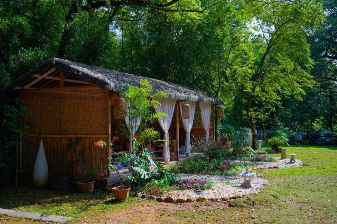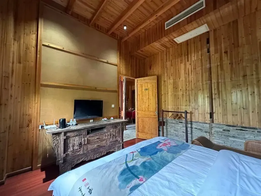 房间或是竹林木屋,自带超大落地窗,清晨推窗,满目山色奔来眼底;有的隐于林深处,晴天可观日,雨天可听风。