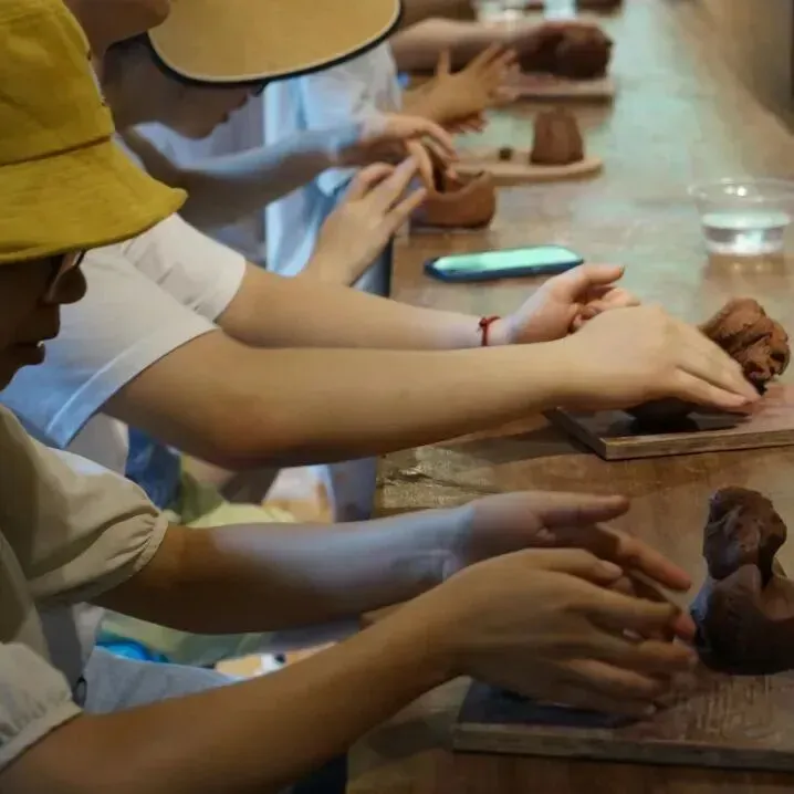 匠园的灵魂,从来不是景,而是人。带着孩子走进匠园,不必远赴景德镇,也能亲手触摸转盘上的湿润陶泥;在根号三工作室,看木头的纹理如何被时间与刻刀重新唤醒;甚至在麓鸣琴坊,还能一窥乐器制技艺如何在指尖与木胎间生出清音。