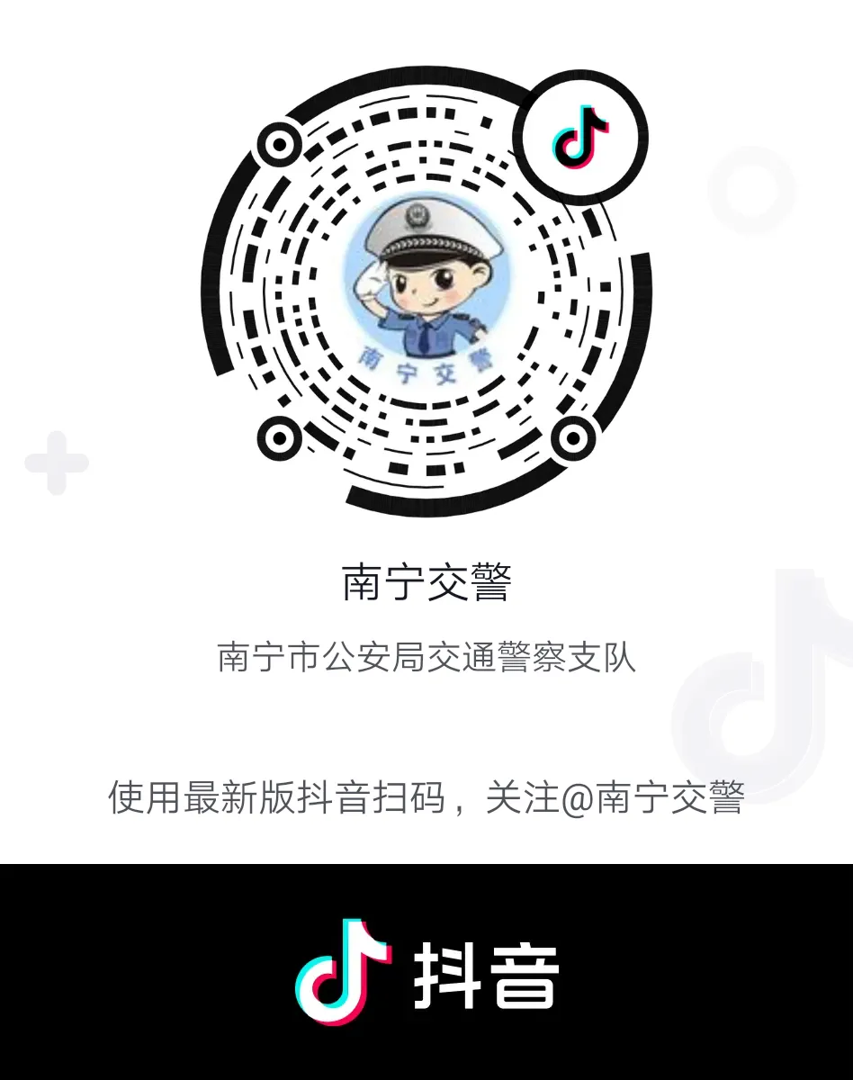 南宁交警开通抖音啦!欢迎大家扫描下方二维码,关注“南宁交警”官方抖音号,一起“抖”起来!