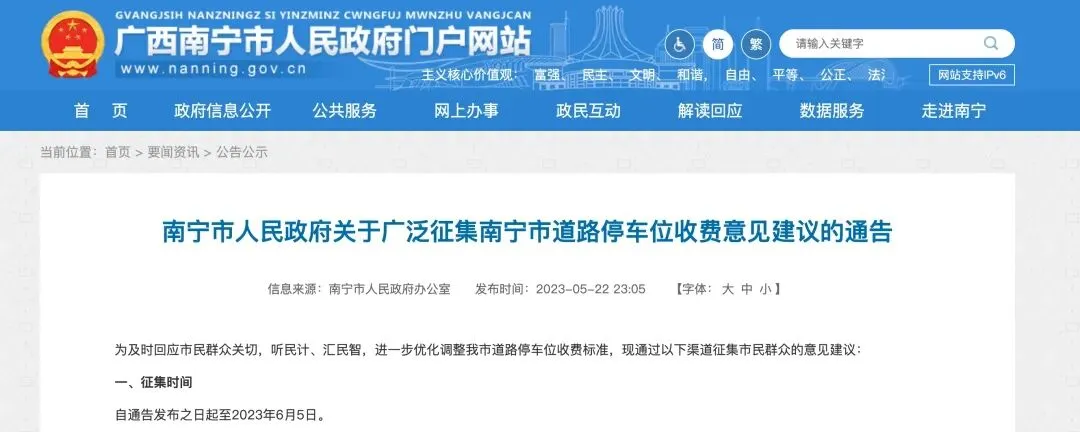 此外,南宁还开通3种渠道广泛征集道路停车位收费意见建议,并拟于6月21日召开道路停车位机动车停放服务收费标准听证会。