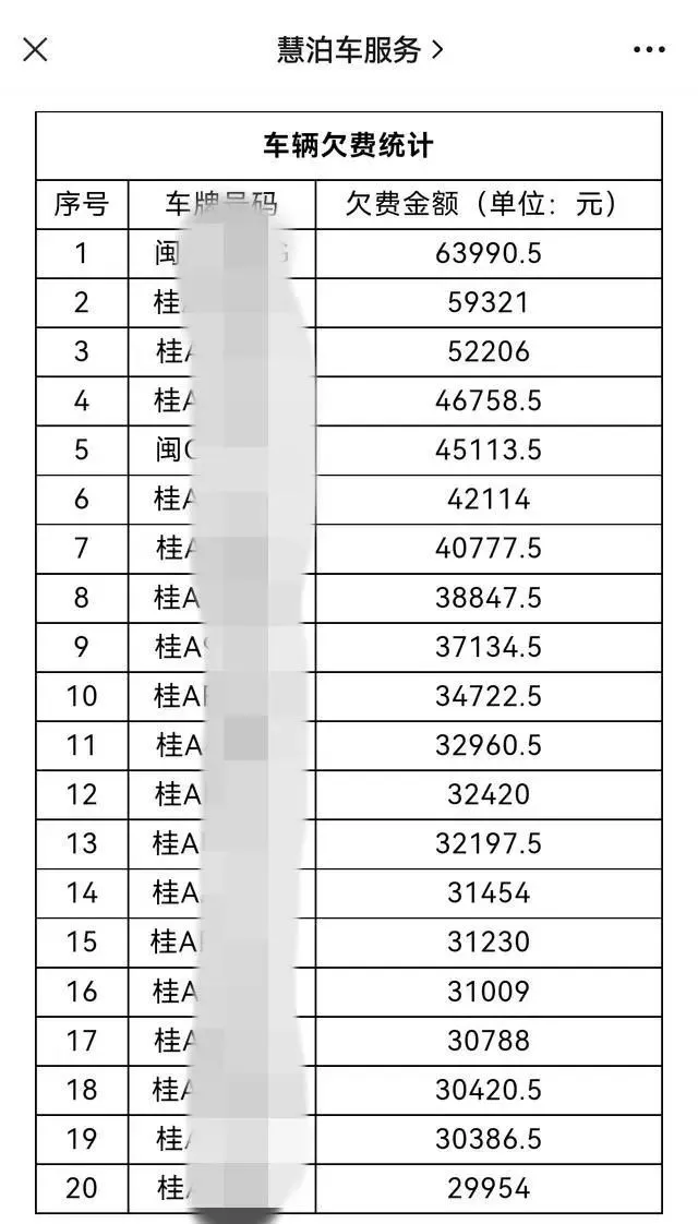 据报道,有网友晒出的欠费截图显示,有车主在南宁慧泊停车场服务有限责任公司欠缴停车费高达几万元。多位南宁当地网友反映称,目前慧泊停车运营停车位超过3万个,几乎南宁路边所有划停车位的地方都归慧泊停车运营。