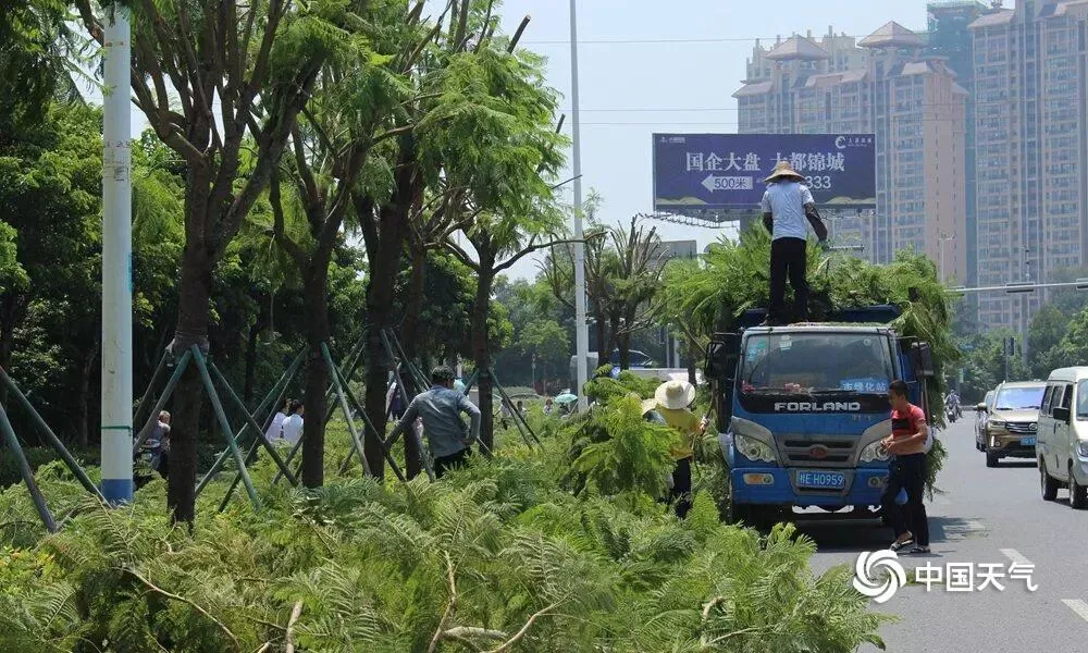 9月15日,为防止大树枝干被风吹断伤及行人,北海为一些道路旁大树“理发”。