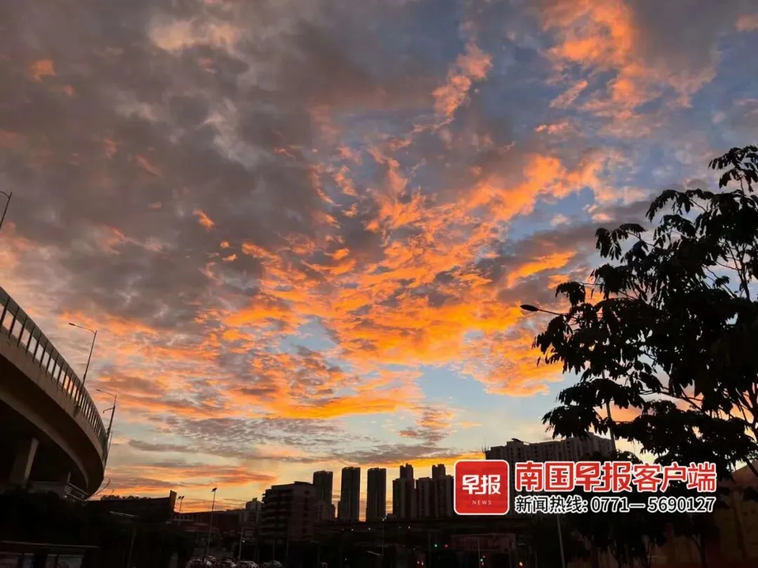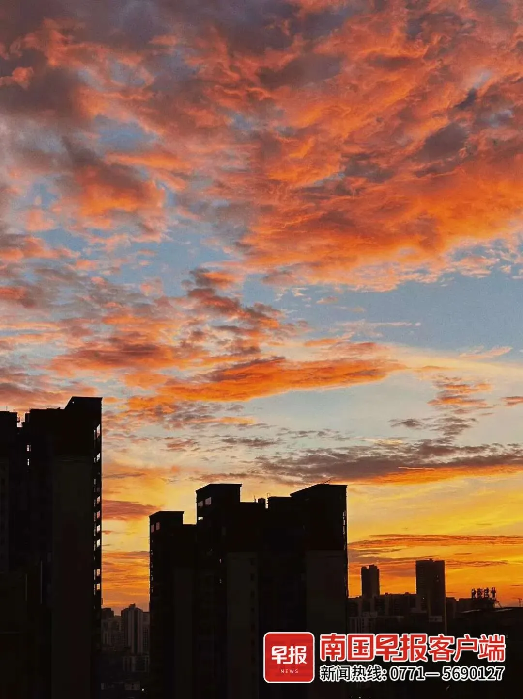 ▲6月27日傍晚,南宁市区天空出现壮观的晚霞美景。南国早报全媒体记者 谭双梅摄