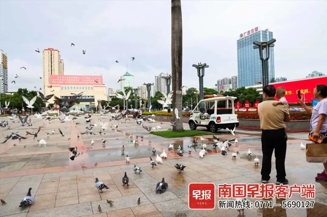 ▲6月27日下午的南宁民族广场,市民趁着雨停在广场闲逛。南国早报全媒体记者 游拥军摄