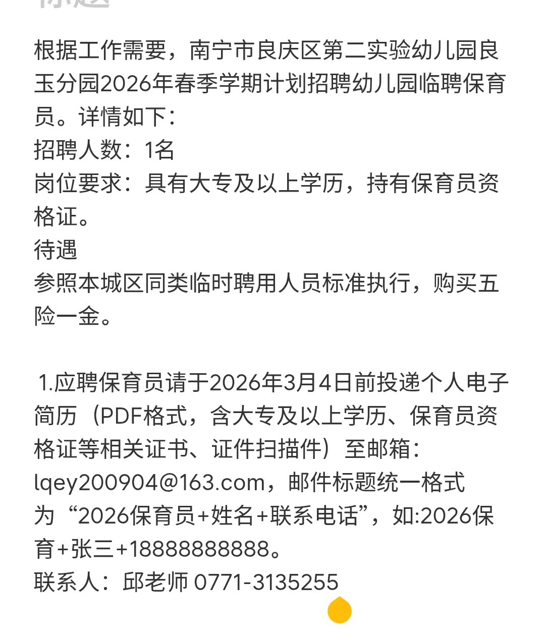 南宁教师招聘 | 南宁市良庆区第二实验幼儿园良玉分园招聘