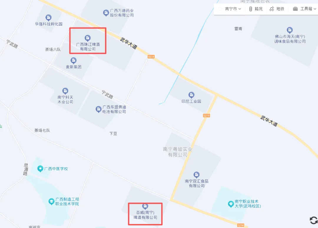南宁本地还有珠江和百威两个啤酒大厂。