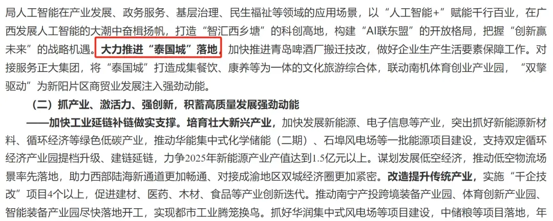 至于定位方面,项目则将以“AI+文旅”深度融合为核心,突出“泰国及东盟底色、广西特色、青啤元素”。